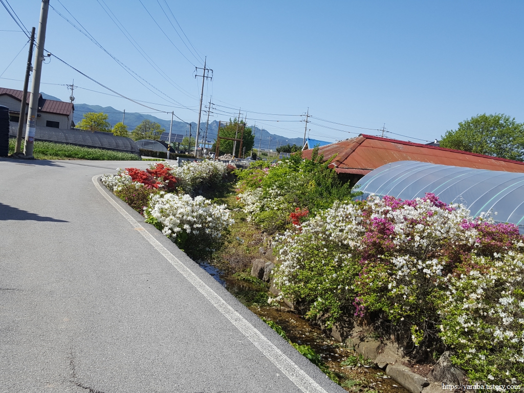 미당의 생가 인근에는 시문학 체험관도 있었다. 생가가 있는 진마마을의 수로에는 갖가지 색을 가진 철쭉이 한창이다. 철쭉과 비슷한 영산홍을 소재로 한 미당의 "영산홍"이란 시 한 편을 감상하고 간다.