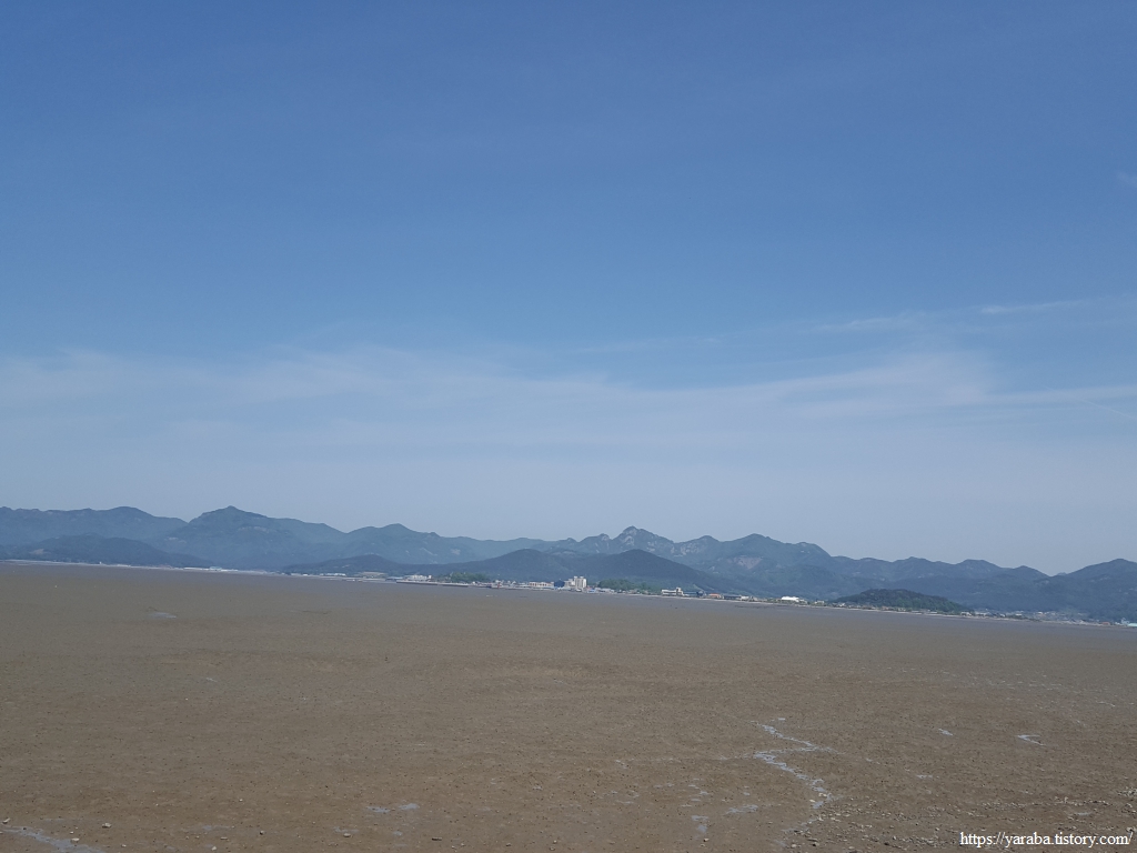 광활한 갯벌 너머로 부안 변산반도의 산들이 어서 오라 손짓한다. 바닷물이 있는지 모를 정도로 곰소만 바다는 갯벌로 가득하다.
