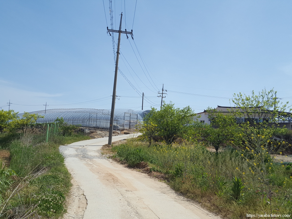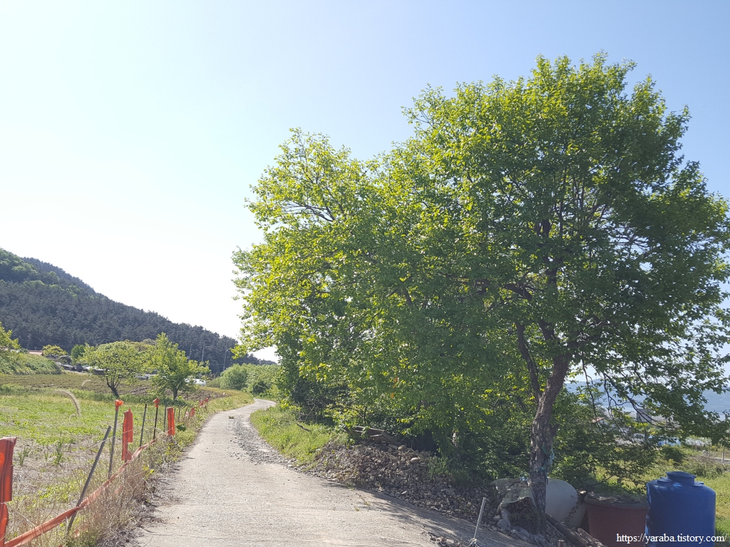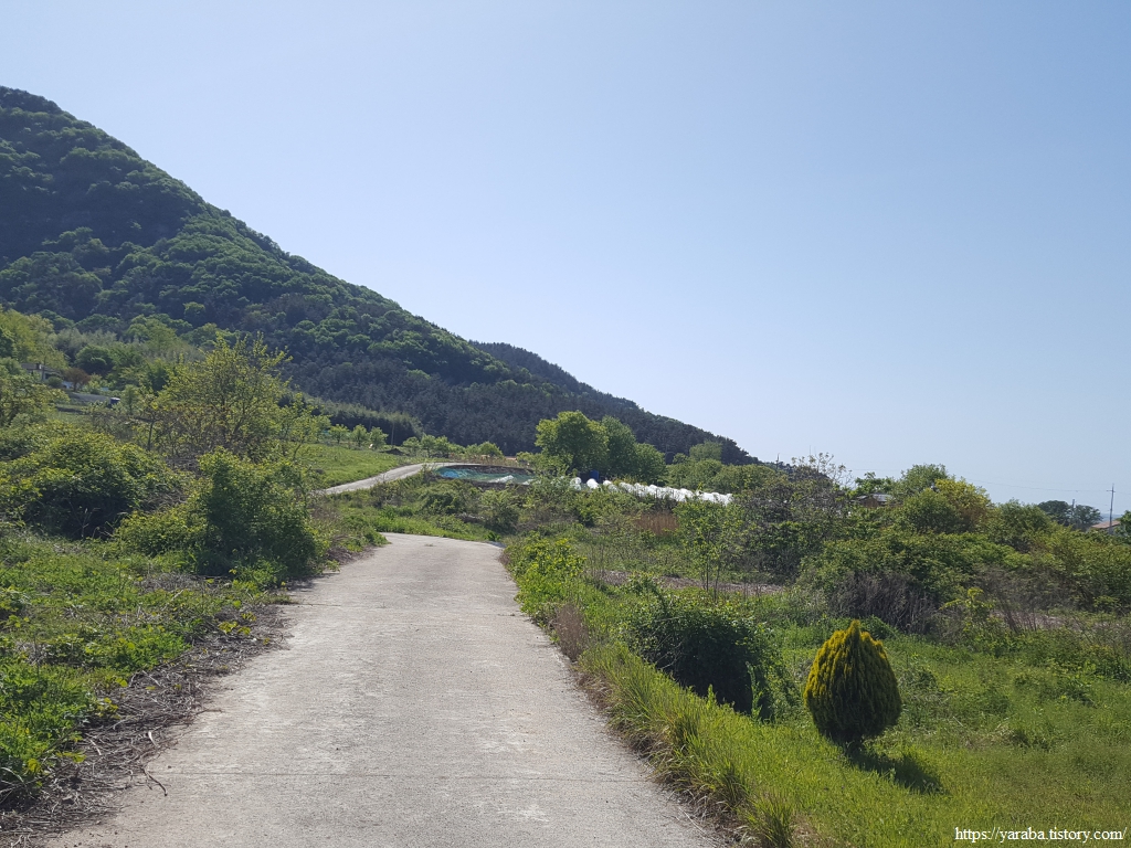 간척지 논길을 걷던 길은 고잔마을의 야산을 만나며 더 해안선 가까이로 나아간다.