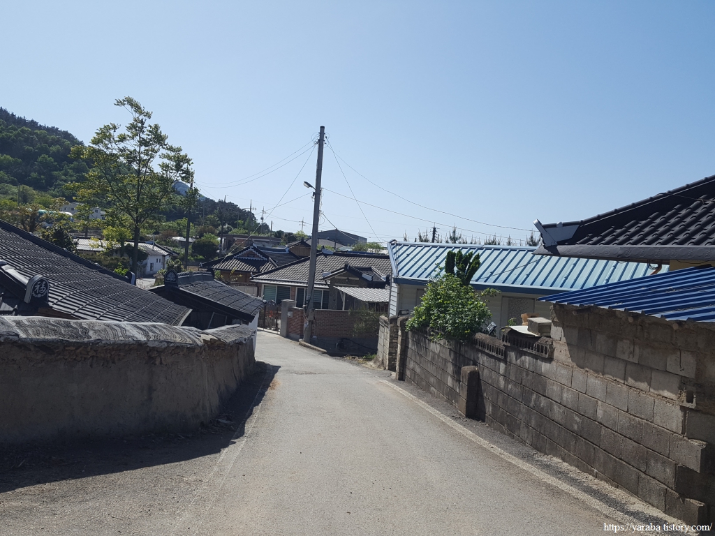 질마재로 도로를 따라 내려가던 길은 좌회전하여 마을길을 통해서 서쪽으로 내려간다.