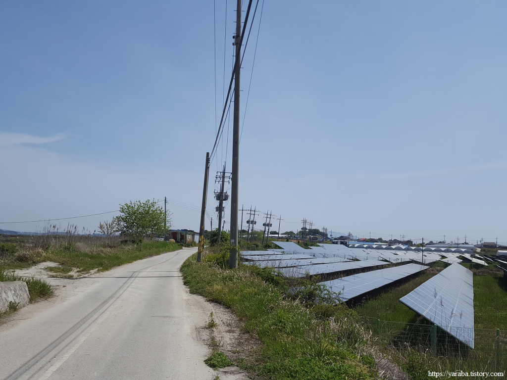 해안선을 따라 동쪽으로 이동하는 길은 태양광 발전 단지를 지나 상포마을로 진입한다.