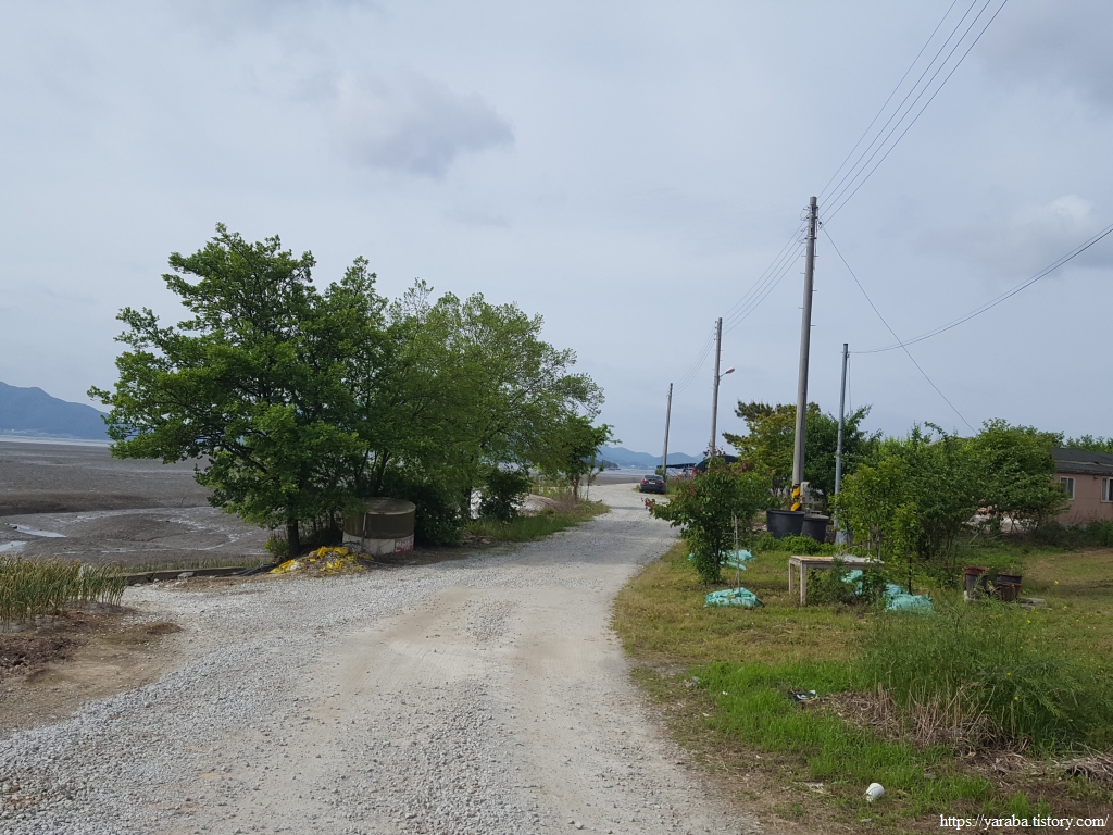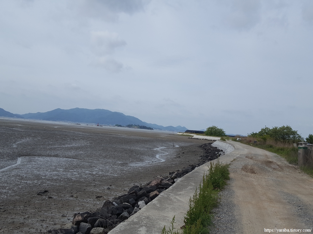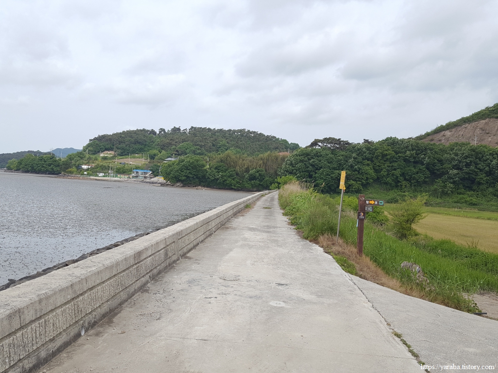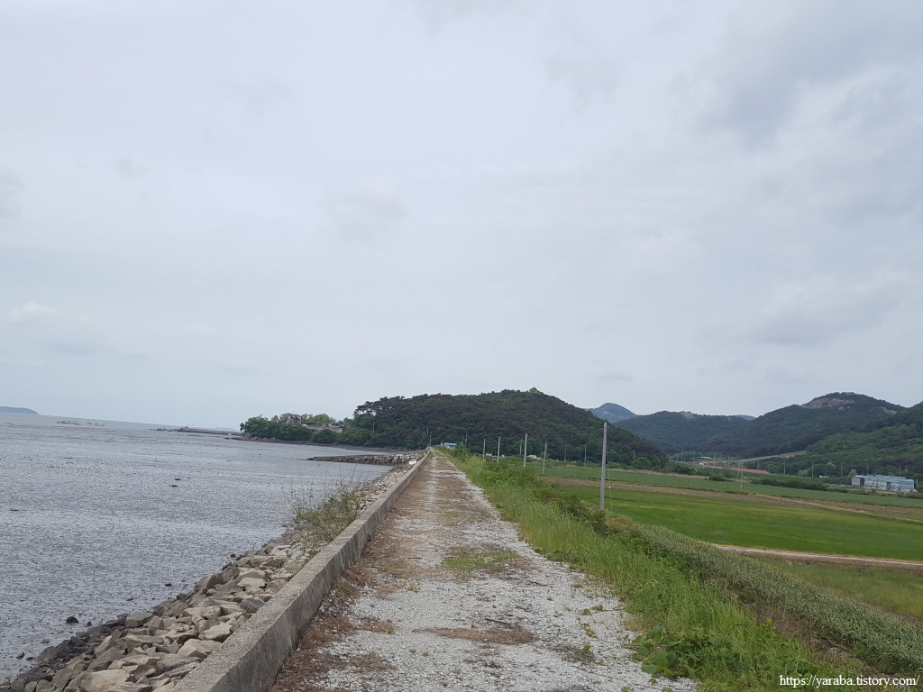 청자로 도로를 벗어난 길은 해안 제방길을 따라 남서쪽으로 내려간다. 곰소만 일대는 서해안에서 그나마 간척이 덜 이루어져 갯벌 원형을 잘 보존한 지역이라는데 그중에서도 크지는 않지만 제방을 쌓아 논을 만든 지역이다.