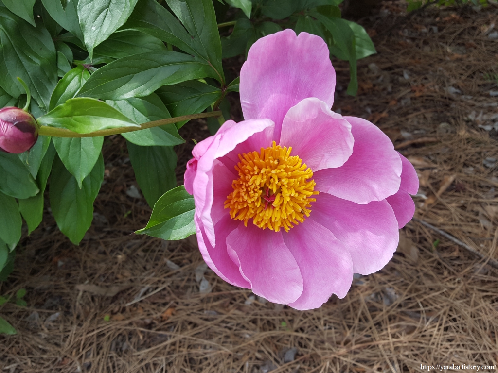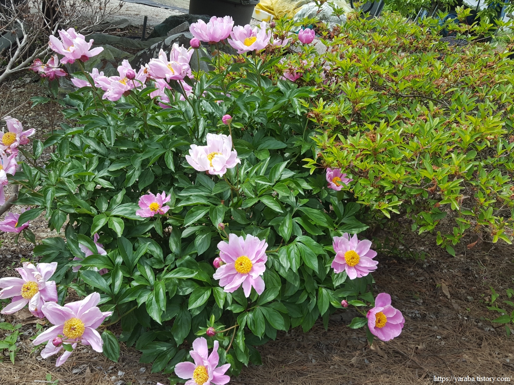 왕포마을로 들어가는 길에 함박꽃을 피운 작약이 시선을 사로잡는다. 가을에 뿌리를 채취해 말려두면 한약으로도 쓰이고 쌍화탕의 재료가 되기도 한다.