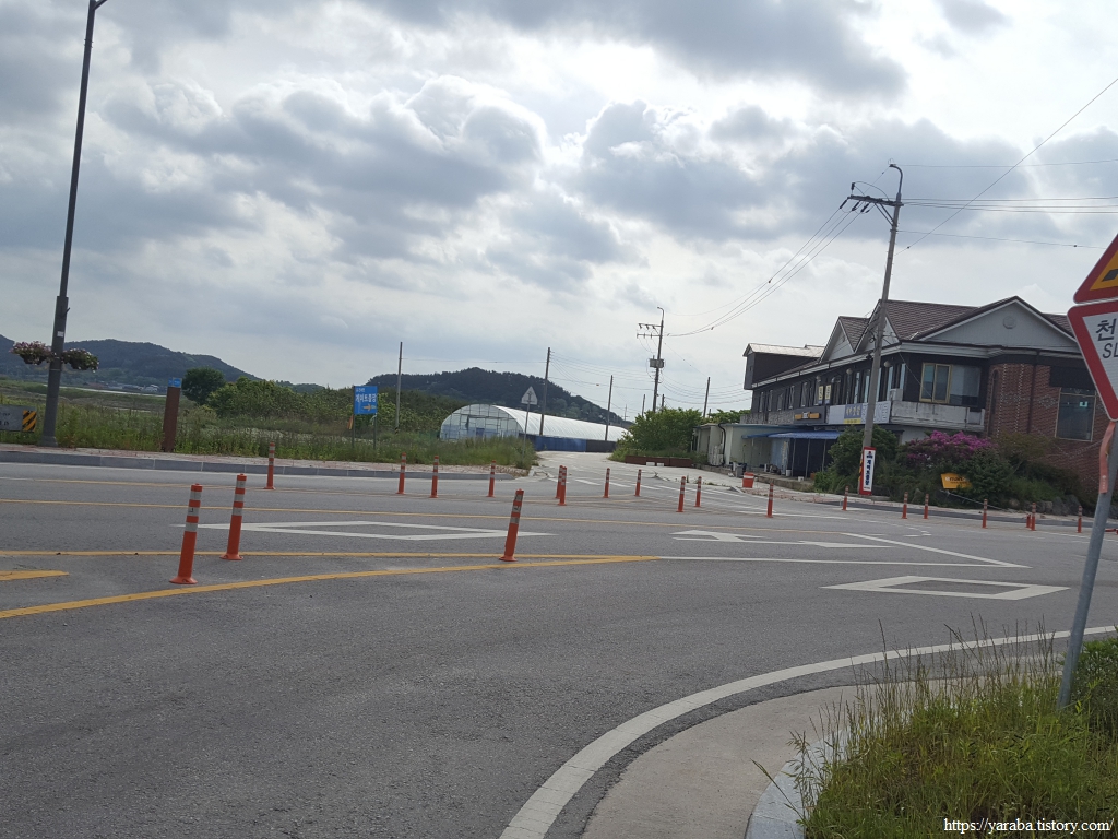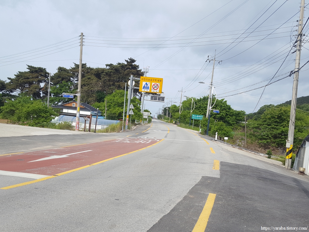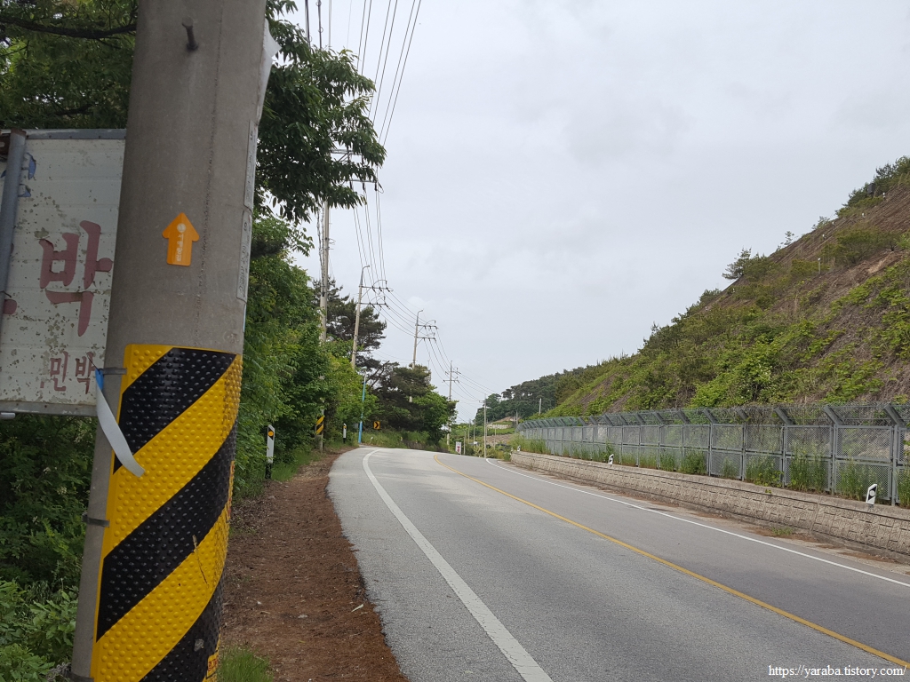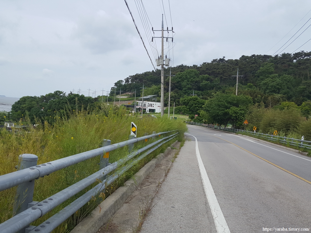 해안 제방길을 걷던 길은 농로를 거쳐 다시 청자로 도로로 올라왔다.
