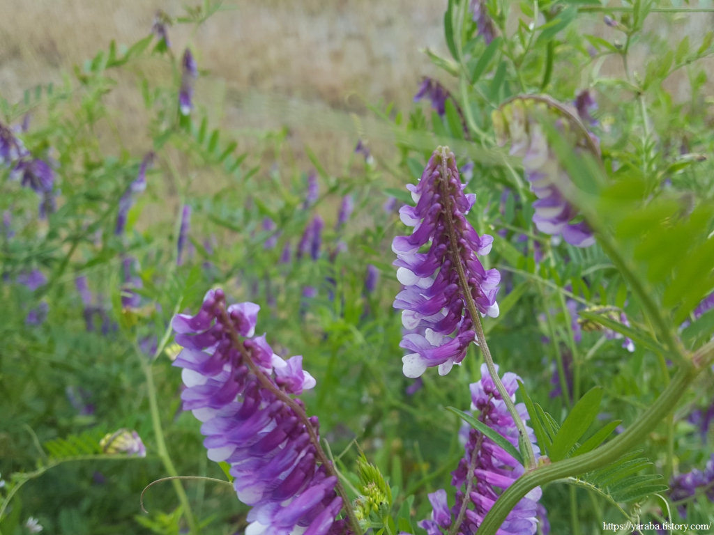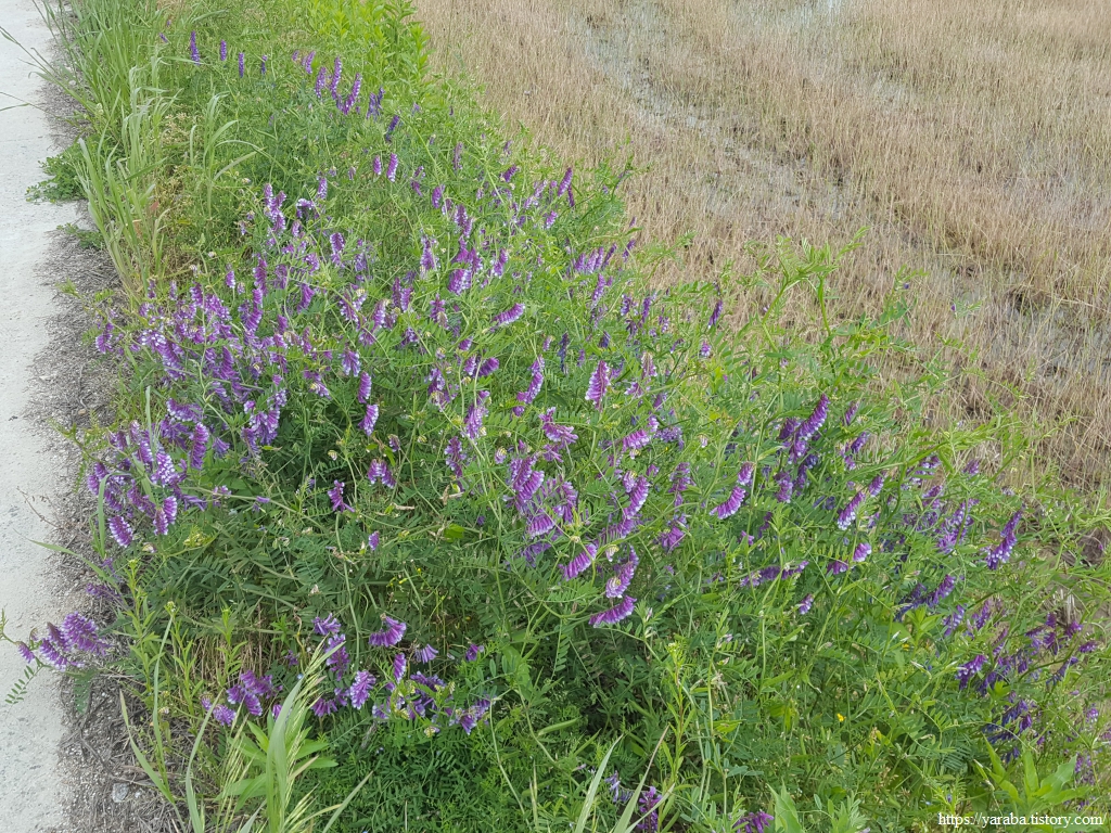둑방길에서 보라색의 갈퀴나물을 만나니 반갑다. 잡초로 취급받지만 잘 활용하면 사람과 동물에게 유익한 식물인데 갈퀴나물이나 살갈퀴를 만나면 늘 어떻게 활용하는 방법이 없을까 상상에 빠지곤 한다.