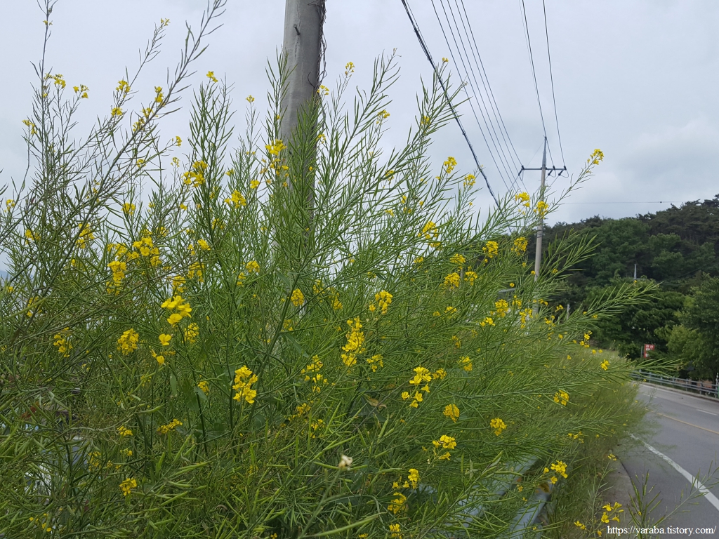 이른 봄 노란색으로 눈을 즐겁게 했던 유채꽃도 이제 꽃이 지고 열매를 맺고 있다.
