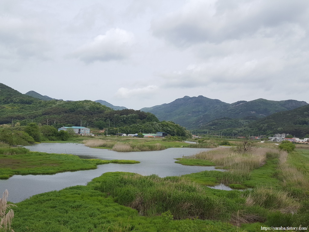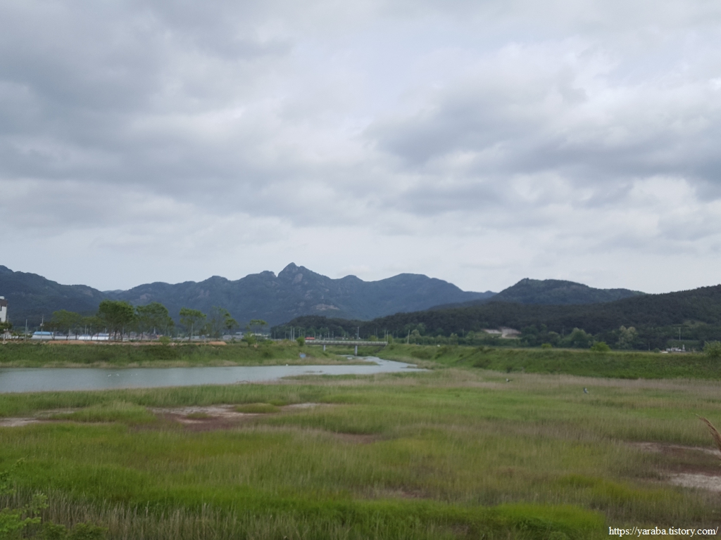 제방길을 쭉 이어서 가면 좋을 텐데 길이 없는지 도로 쪽으로 길을 돌아서 가야 한다.