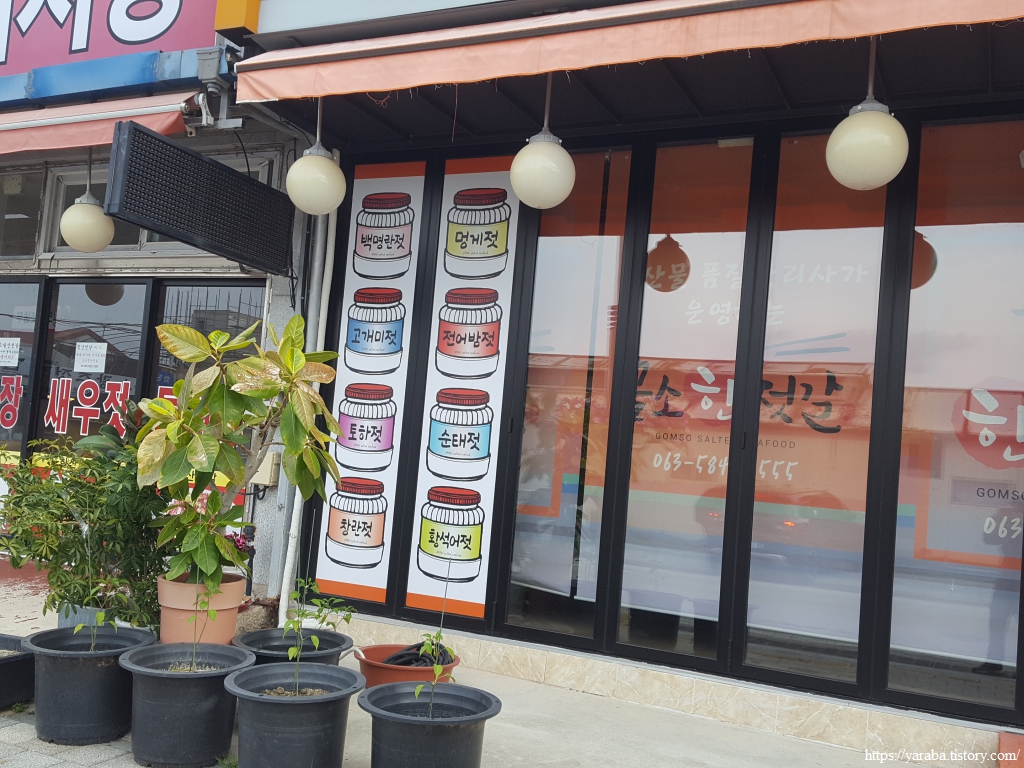 곰소 염전이 있으니 젓갈 파는 가게가 즐비한 것은 당연한 결과일 수 있다. 아무튼 밥도둑 젓갈을 입맛만 다시며 그냥 지나쳐 가야 한다는 것이 아쉽다. 그런데, 젓갈 종류도 참으로 다양하다. 고춧가루 양념 없이 소금만으로 염장한 명태알젓이 백명란젓이고, 고개미젓은 곤쟁이젓이라고도 부르는데 새우처럼 생긴 1Cm 내외 아주 작은 곤쟁이로 담근 젓갈이다. 어떤 분들은 해수욕장 근처 해안으로 나가서 뜰채로 잡아 젓갈을 담그기도 한다. 전어는 내장이나 전어 새끼로 젓갈을 담그기도 하는데 내장 중에서도 타원형의 콩만 한 전어의 위로 담근 젓을 전어밤젓 또는 돔배젓이라 한다. 풀치를 담그며 자연스럽게 나오는 부산물이 갈치 내장이고 이것으로 만든 젓이 갈치속젓인데, 갈치의 아가미로 담근 젓을 순태젓이라 한다. 참 음식을 세계는 무궁무진하다.