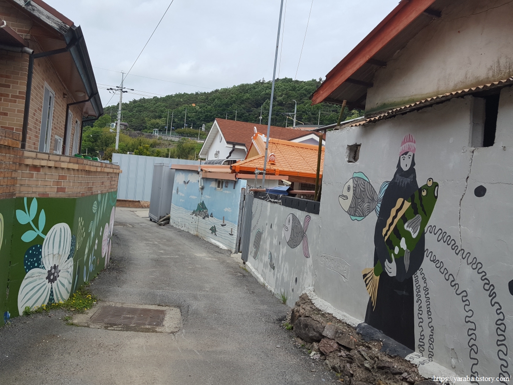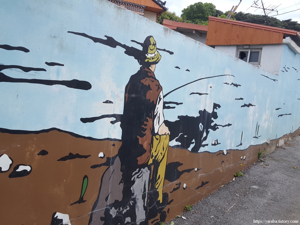 독특한 화풍의 벽화가 인상적인 마을이다. 낚시꾼의 그림을 보니 이 동네로 어떤 연예인이 낚시를 자주 온다는 이야기가 떠오른다.