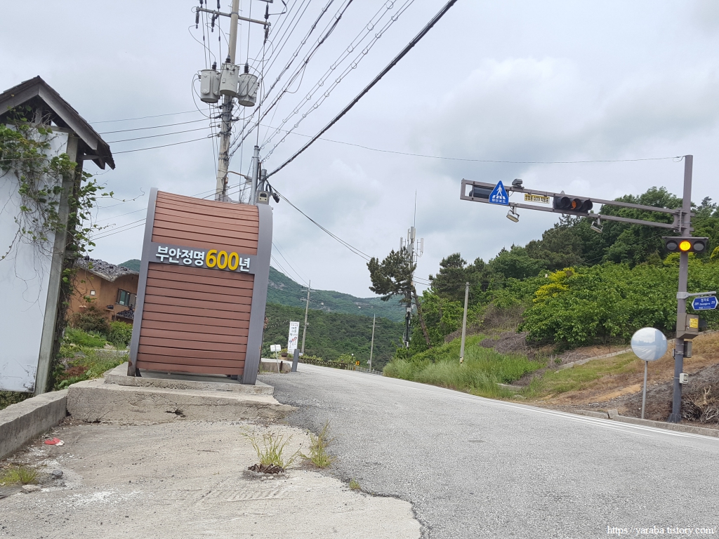작당마을을 가로지른 길은 다시 청자로 도로로 나간다. 그런데 버스 정류장에 "부안 정명 600년"이란 글귀가 붙어 있다. 2016년에 있었던 행사인데, "부안"이라는 이름을 얻는지 600년을 기념하는 것이다. 고려 때만 해도 부령현과 보안현으로 나뉘어 있었는데 조선 태종 때(1416년) 두 고을을 합치면서 부안이라고 했다는 것이다. 우리나라의 많은 지명이 일제 강점기에 인근 마을의 이름 앞뒤를 따서 문맥도 없이 지어진 것이 상당한데 부안은 태종 때라니 왠지 다행이다 싶다. 보안면도 새롭게 보이고, 온전한 이름의 뜻을 가진 고창군의 부안면도 새롭게 기억될 것 같다.