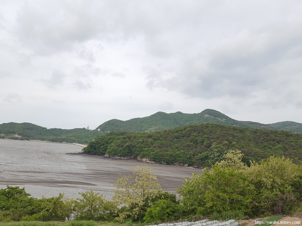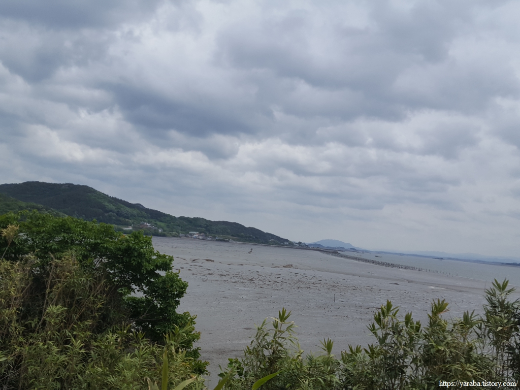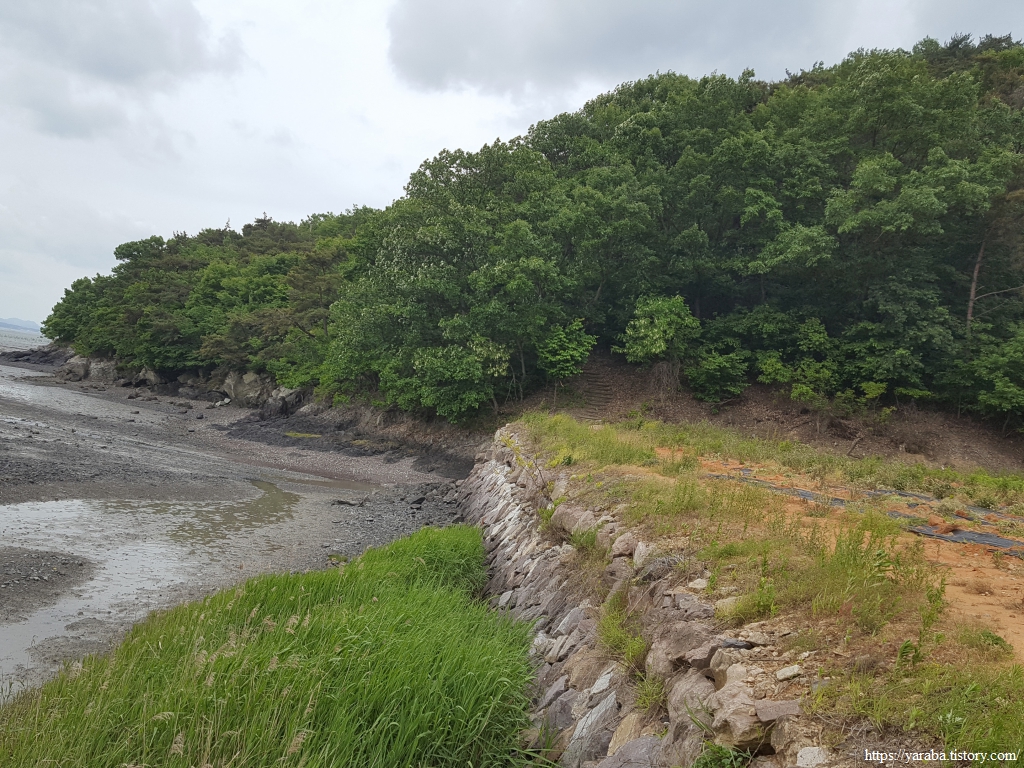 길이 휴양림 관리 지역 안으로 들어가면 잘 정비된 숲길을 따라 이동하게 된다. 우리가 걸어왔던 작당마을 쪽 갯벌을 돌아보고 길을 이어간다.
