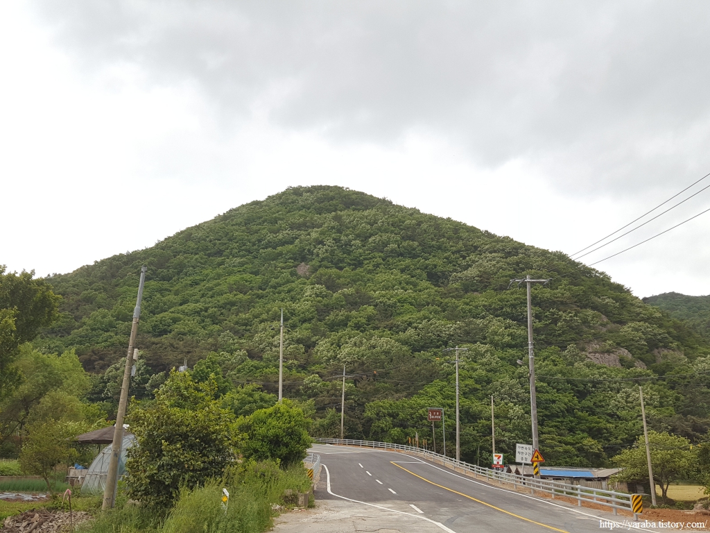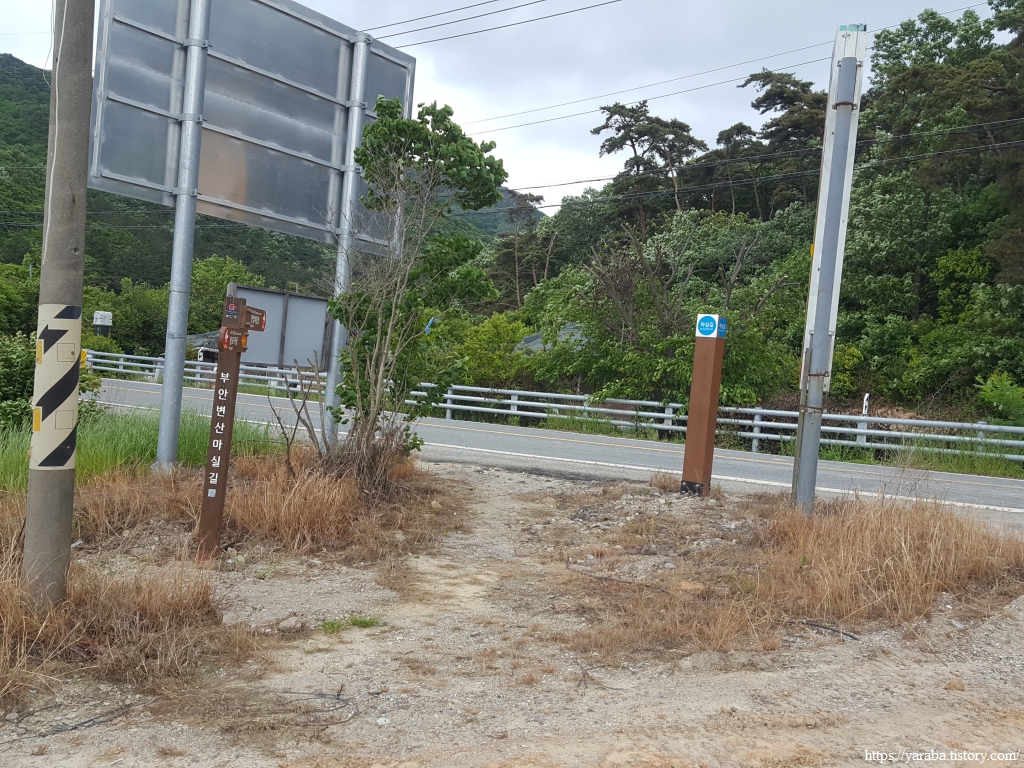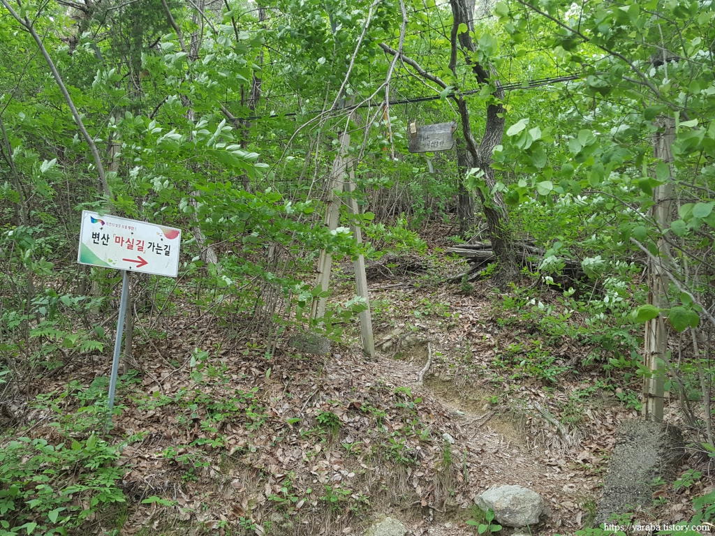 암벽이 인상적인 갑남산(413m) 아랫 자락을 지나서 변산로 도로로 합류한다.