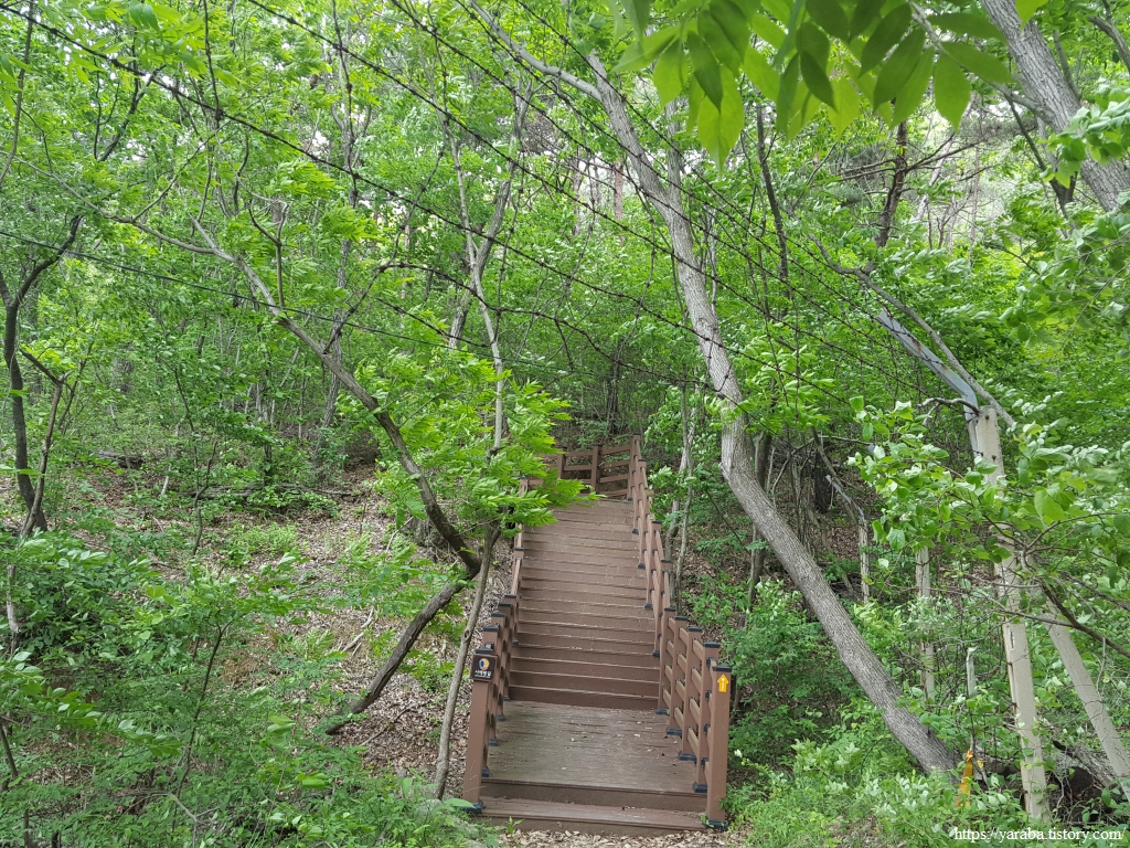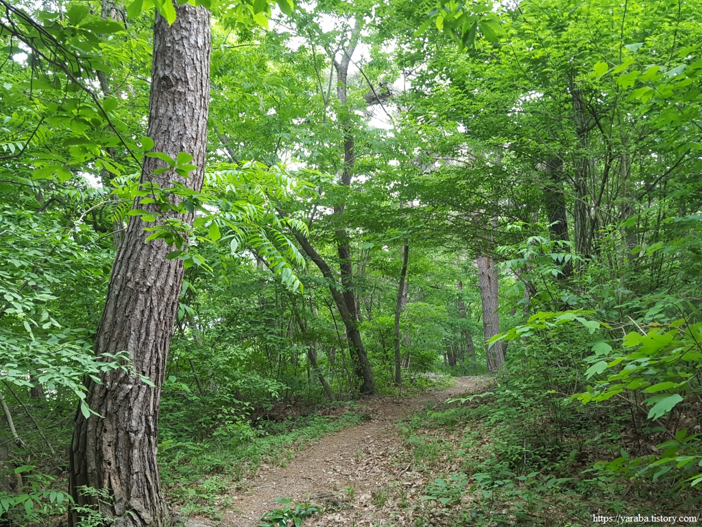 길은 휴양림 숙소 단지 끝에서 다시 숲 속으로 들어간다.