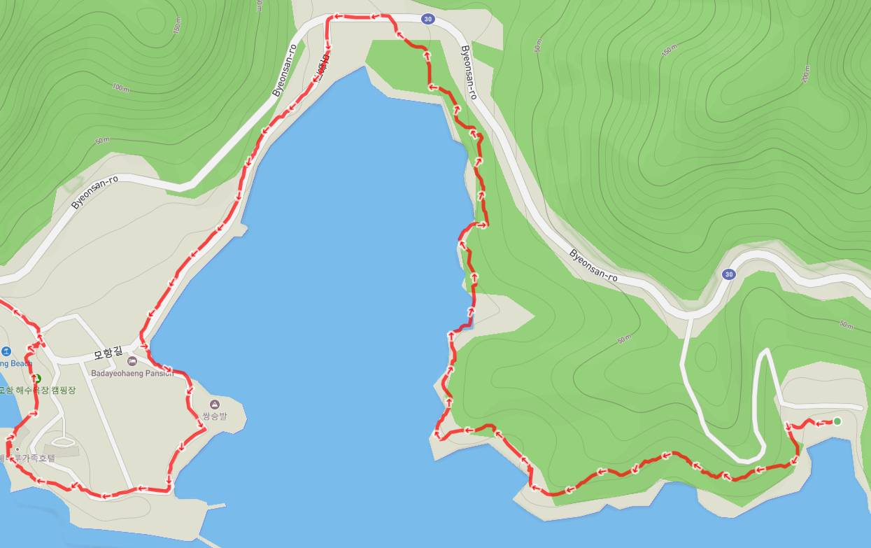 만 안쪽으로 깊이 들어가는 숲길도 어느덧 끝이 나고 길은 30번 국도 변산로 방향으로 이동한다.