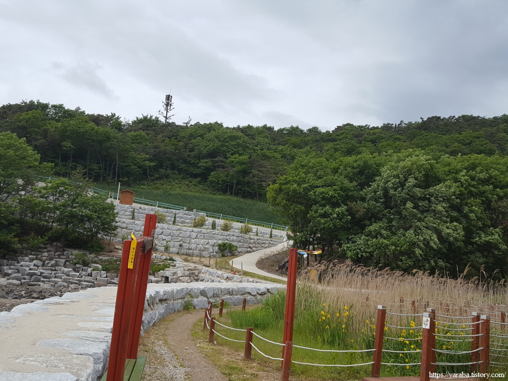 휴양림으로 들어오니 곳곳으로 관리된 조경이 확실히 차이가 난다. 작은 습지에도 그에 알맞은 식물을 심어 놓았다.