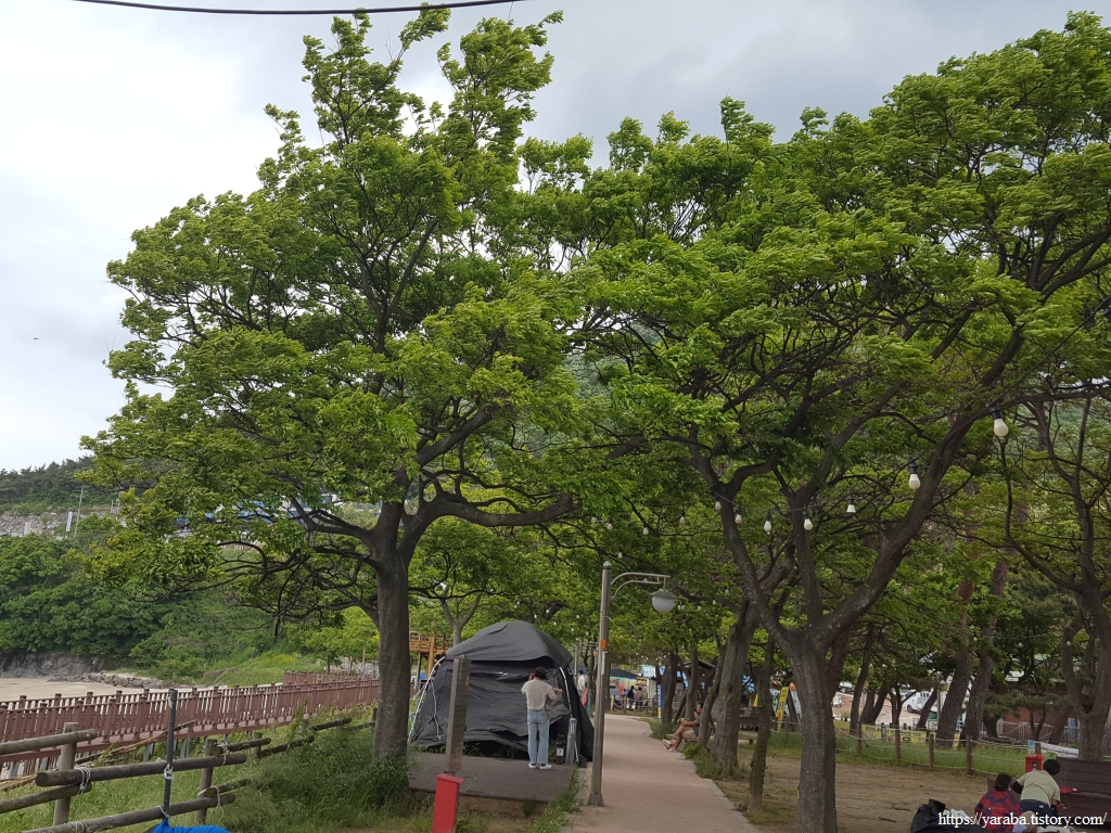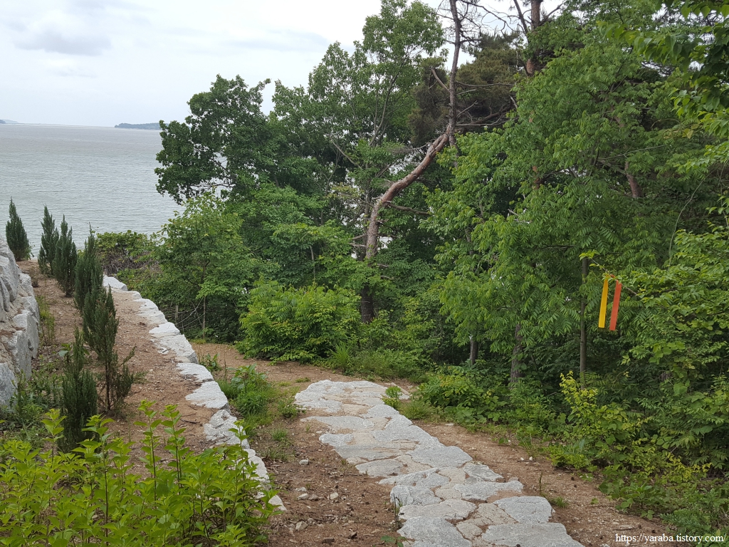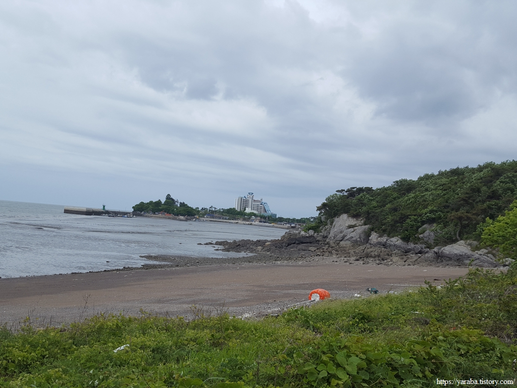 위락 시설이 있는 작은 해변을 관통하여 숲길을 이어간다.