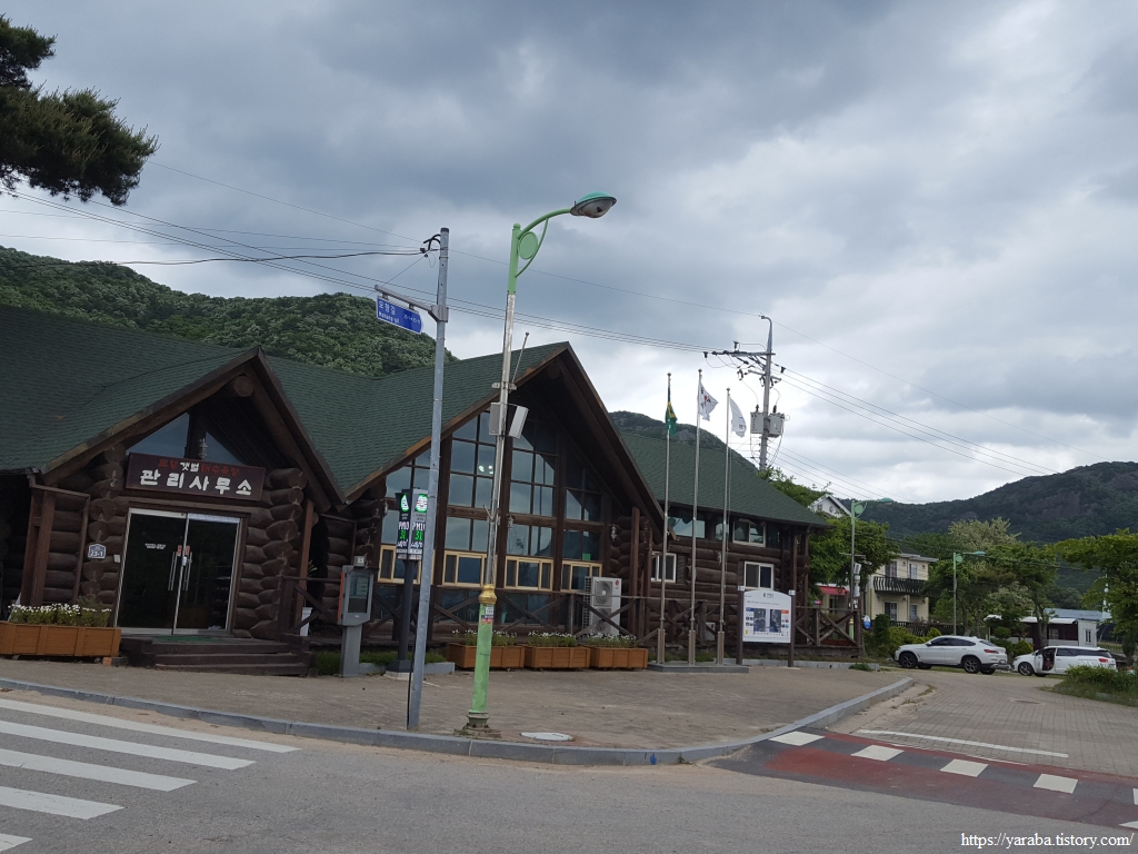 해수욕장 관리사무소 앞에서 코스를 마무리하고 편의점에서 아이스아메리카노 하나 구입하여 넉넉한 휴식을 취하고 46코스를 이어간다.