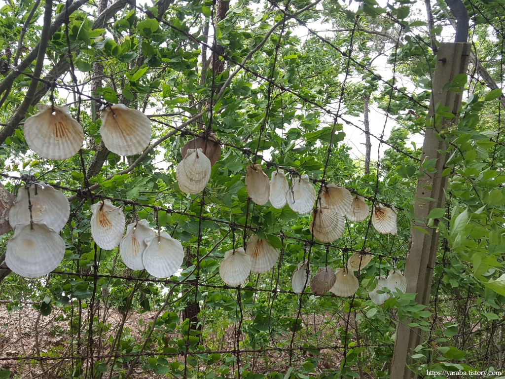 산티아고 순례길도 아니고 휴전선도 아니지만 철조망에 걸린 조개껍질이 길의 운치를 더해준다.