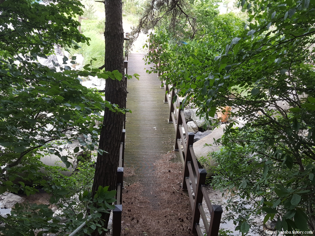 숲이 얼마나 울창한지 계곡을 건너는 작은 통나무 다리는 이끼가 가득하다.