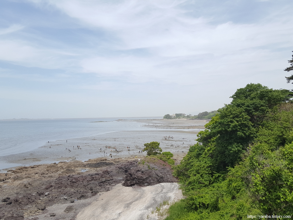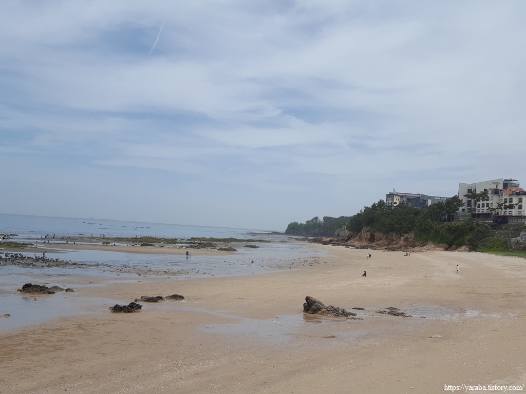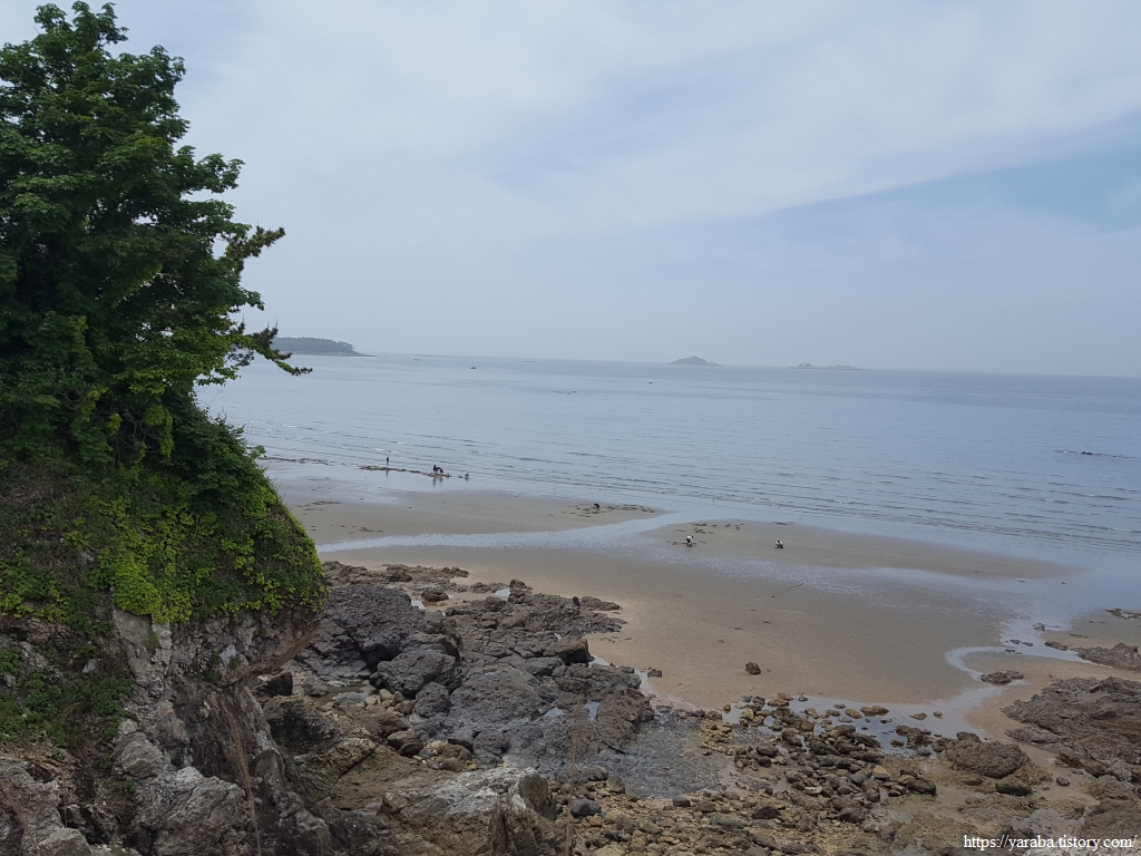 해안 바로 옆으로 이어지는 산책길은 변산 해수욕장으로 점점 더 가까이 다가간다. 해안에 점점이 흩어진 사람들은 대부분 허리를 숙이고 바닥과 열애 중이다.ㅎㅎ