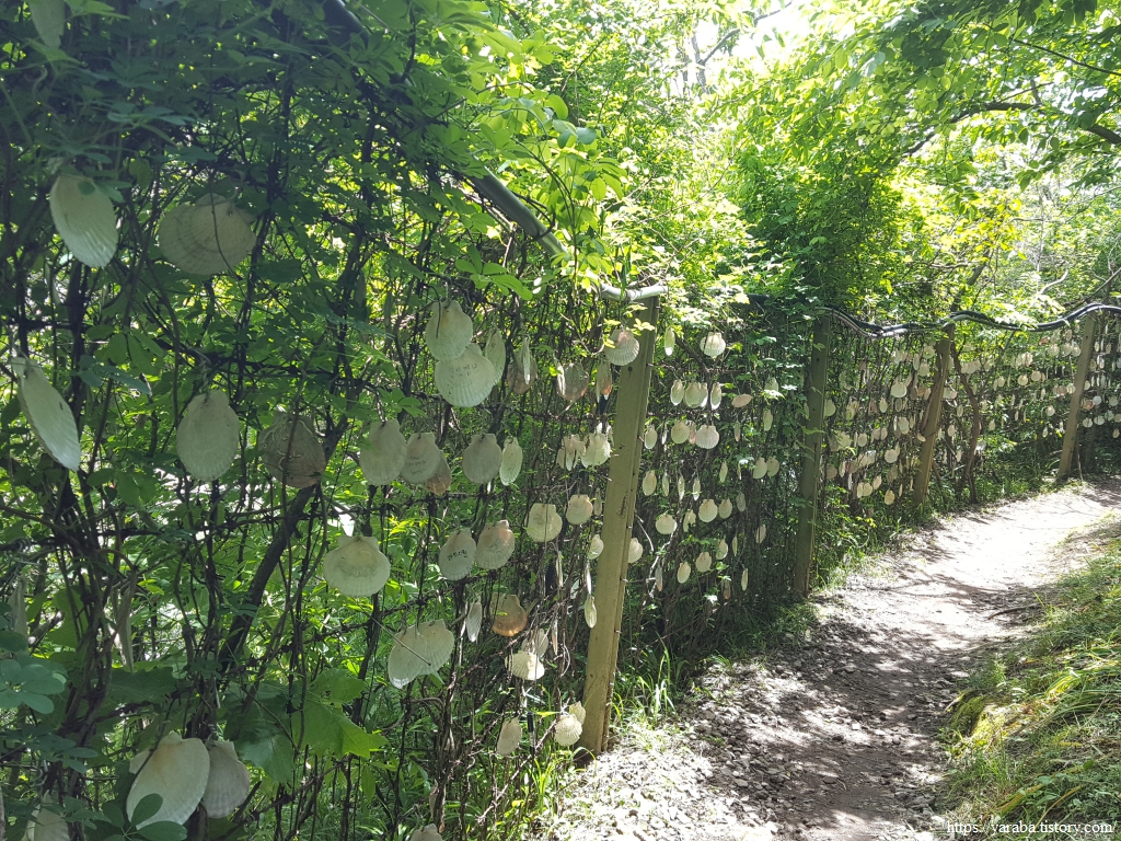 송포항 쪽으로 돌아가는 길은 해안초소길의 철조망이 건재하다. 예전에는 침투 방지용이었겠지만 지금은 산책로의 안전을 지키는 역할을 하고 있다는 생각도 든다. 철조망에 걸린 조개껍데기가 가시를 가려주어 좋다.