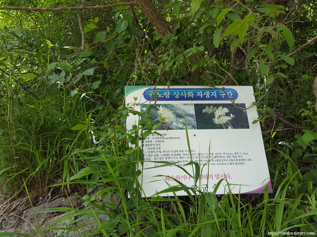 송포항 인근인 이곳은 변산에서 자생하는 붉노랑상사화의 군락지인데, 봄인 지금은 꽃이 없어 알아볼 수 없다. 8월 중순 한 여름을 지나면 곳곳에서 꽃을 목격할 수 있다고 한다.