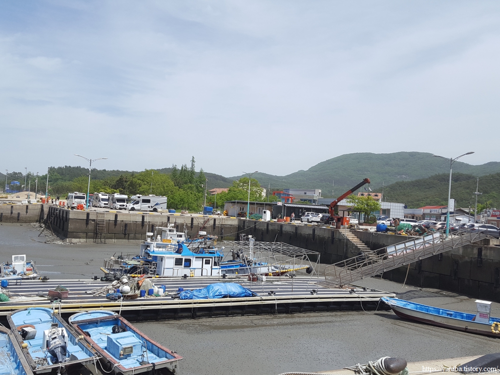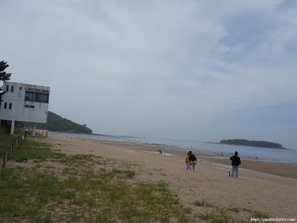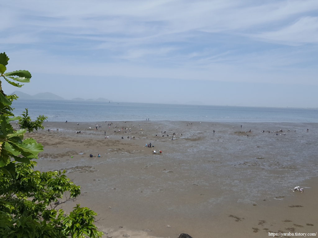 작은 하천을 직접 건너고 있는 아이의 모습을 보니 지금이라도 내려가고 싶다. 아장 거리는 작은 아이부터 허리에 손을 얹은 할아버지, 할머니까지 대부분은 가족 단위로 옹기종기 모여 땅을 파고 있다. 동죽과 맛조개를 잡는다고 한다.