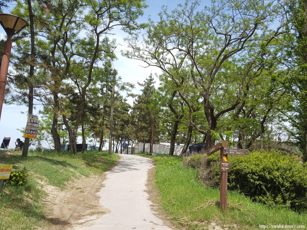쾌청한 하늘에서 쏟아지는 햇살과 선선한 바람이 공존하는 봄 날씨 속에서 고사포 해변은 장화를 신고 손에는 호미를 들고 열심히 바닥을 뒤집고 있는 사람들의 움직임으로 정중동이다. 길은 고사포 해변 끝자락의 작은 야산 쪽으로 향한다.