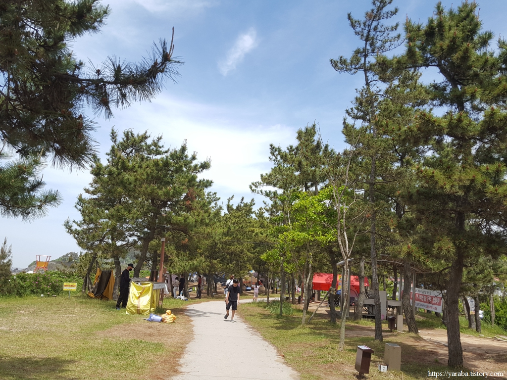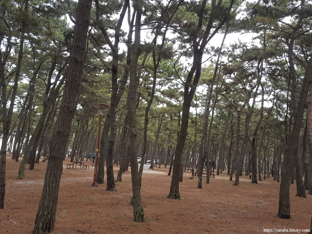 바닥에 떨어진 솔잎을 밟으며 고사포 해수욕장의 솔숲길을 걸어 해수욕장 끝자락으로 이동한다. 이곳을 방문하신 분들은 바닷물에 몸을 담그는 해수욕 준비보다는 호미와 장화를 장착하고 바다로 나갈 준비에 여념이 없으시다. 솔숲길은 해변 안쪽으로 약 8백여 미터 이어진다.