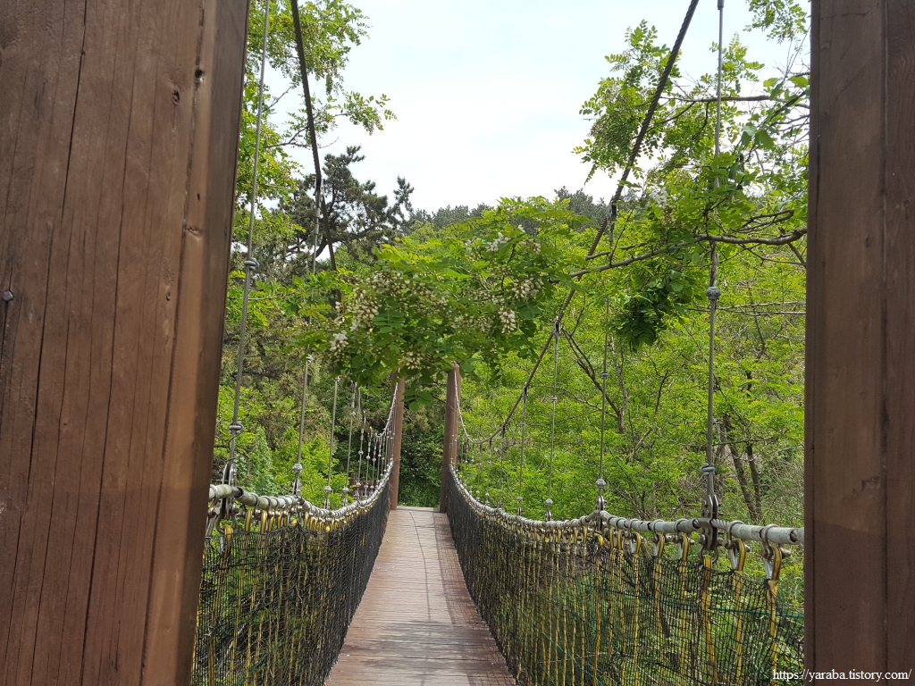 계곡에 자리한 작은 출렁다리도 통과한다. 북쪽 바다로는 멀리 새만금 앞에 자리한 비안도를 비롯한 섬들이 시야에 들어온다.