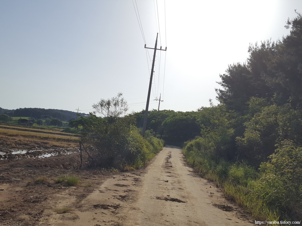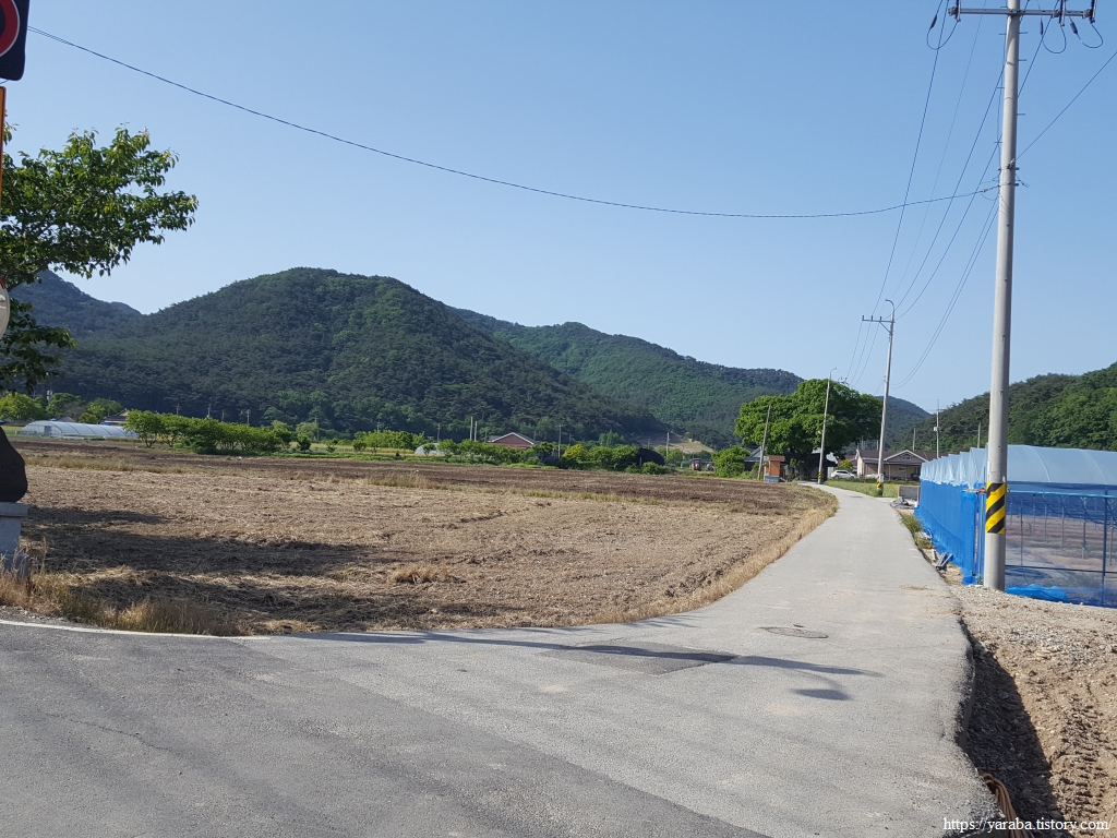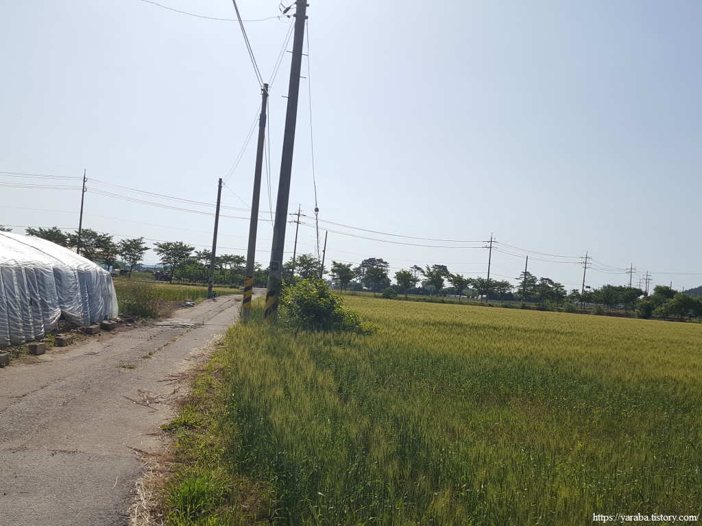 등룡마을을 지나서 도로를 만나면 우회전하여 도로를 따라가다가 다시 좌회전하여 농로로 가야 하는데 우리는 아무 생각 없이 장신교차로 쪽으로 가다가 아니다 싶어 다시 돌아왔다.