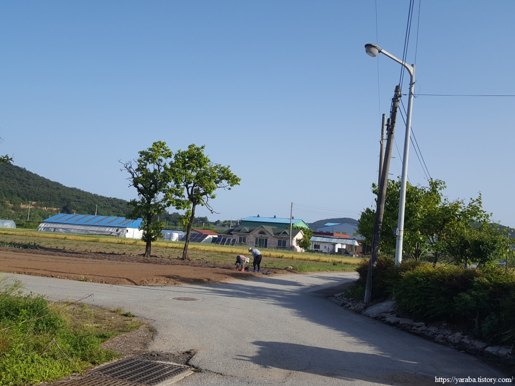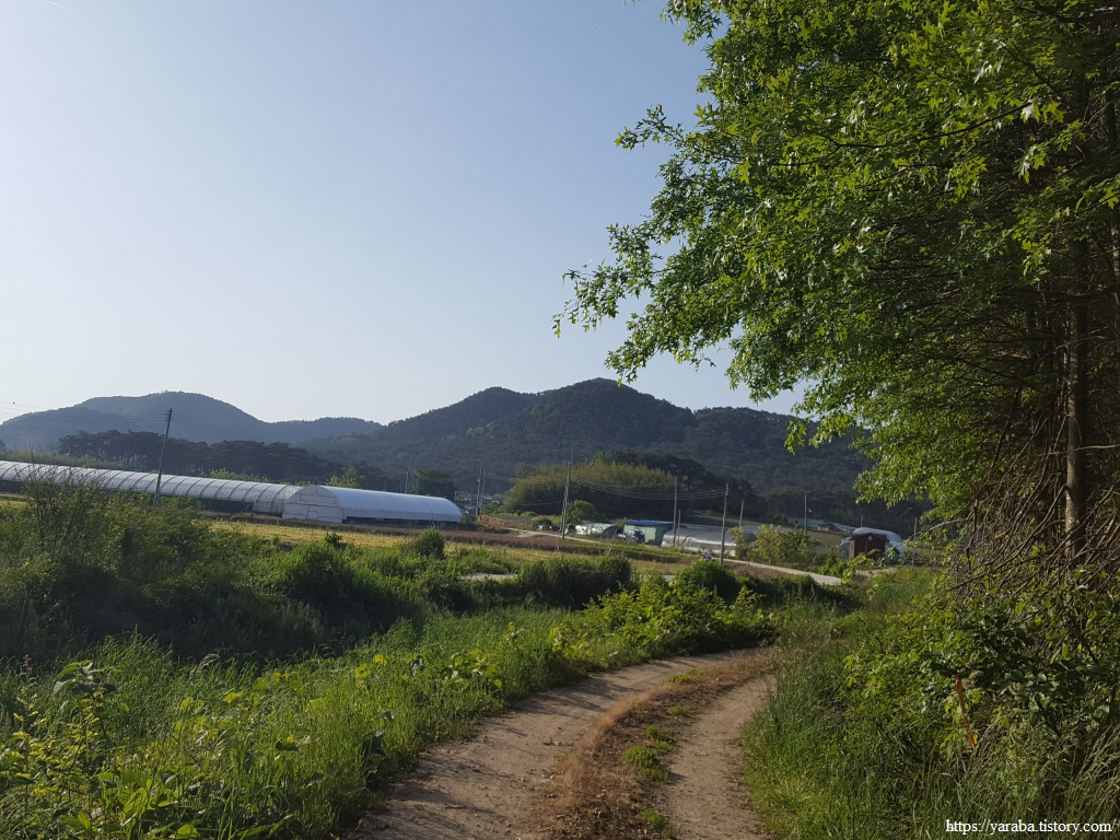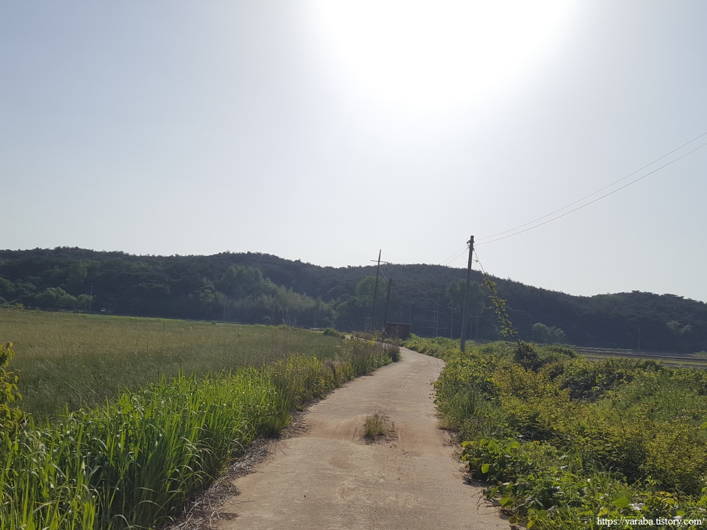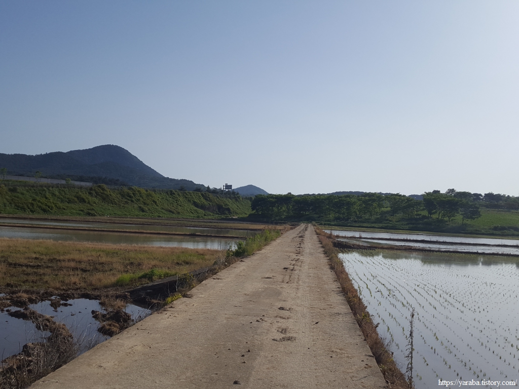 5월 중순을 지나고 있는 시기, 논은 모내기 준비를 위해서 물을 대고 있고 수로에는 들판을 적시는 물이 넉넉하게 흐른다. 눈부신 아침 태양을 정면으로 마주하며 수로를 따라서 동쪽으로 이동한다.
