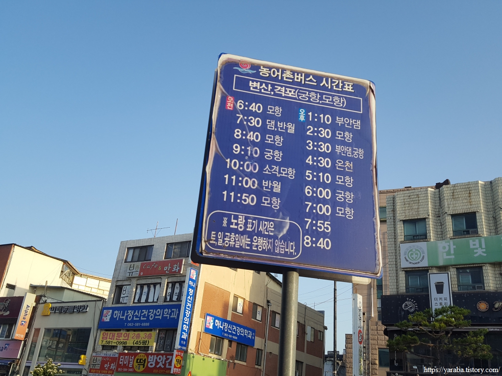 지난 여행 1주일 후 다시 부안을 찾았다. 부안읍내에서 시내버스 타기는 다른 도시와는 조금 다른 방식이라 주의해야 한다. 대부분은 터미널에서 버스가 출발하지만 부안은 터미널 안에서 출발하는 것이 아니라 터미널 인근 도로에서 행선지 표지판을 찾아서 해당 위치에서 버스를 타야 한다. 49코스 시작점 인근인 노계마을로 가려면 "변산, 격포(궁항, 모항)" 방면 버스를 타면 된다. 노계마을로 돌아와 지난 여정을 이어간다.
