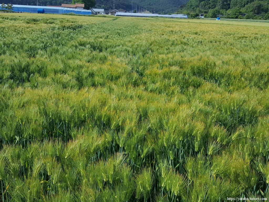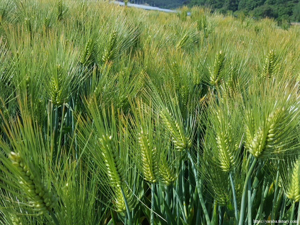 짙은 초록색 줄기에 통통하게 살이 오른 보리에 왠지 군침이 돈다.