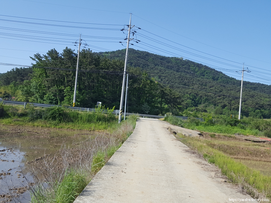 모내기가 본격적으로 시작된 농로를 따라서 국도 아래를 통과하여 건너편 송림마을 쪽으로 향한다.