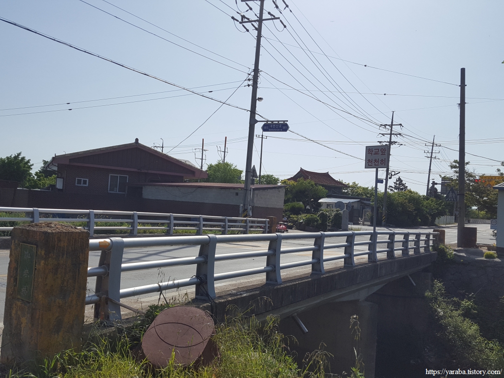 구암교로 영은천을 건넌 길은 고인돌로 도로를 따라서 상서 초등학교 앞을 지난다.