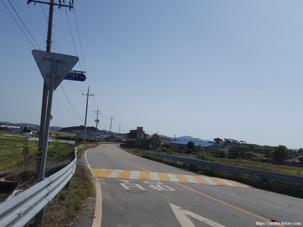 농로를 따라 내려온 길은 석하마을에서 변산로 도로를 가로질러 남쪽으로 내려간다.