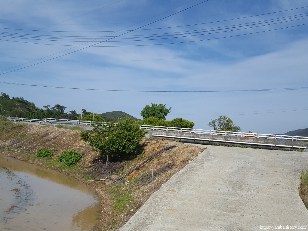 수로를 따라 동쪽으로 가는 길은 국도와 멀어졌다, 가까워졌다를 반복한다.