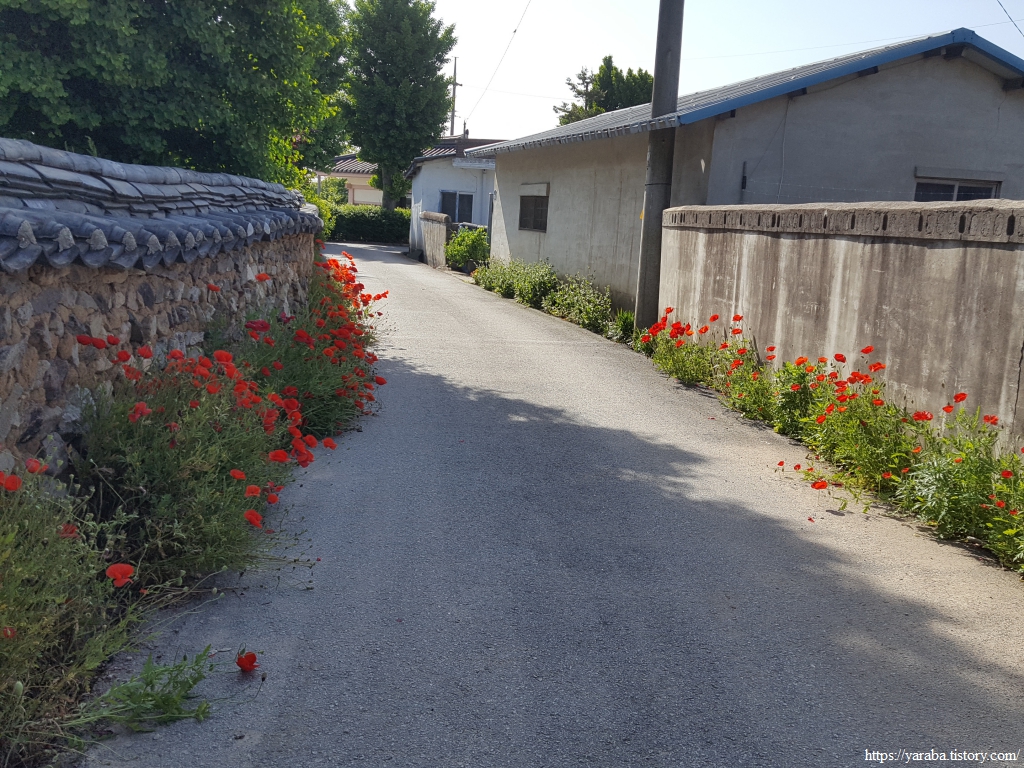 마을길을 수놓은 개양귀비꽃에 옆지기는 신이 난 모양이다. 개양귀비는 두해살이풀로 채소로도 사용하고 씨앗은 식용과 약용으로도 쓴다는데 우리는 오로지 꽃만 기억하니 이 또한 우리의 한계가 아닌가 싶다.