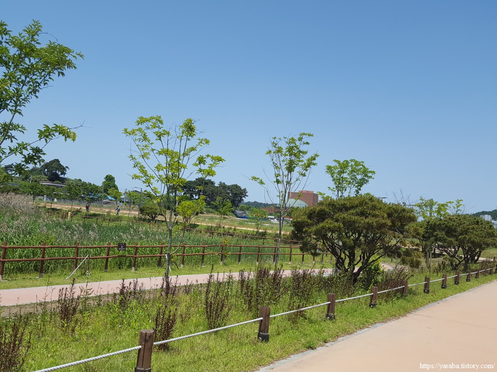 길은 매창공원 중앙을 서쪽으로 가로질러 간다.