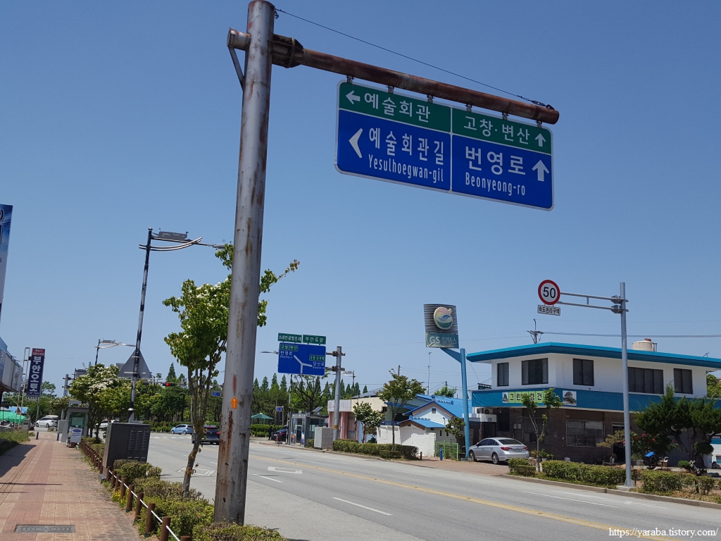 길은 도로를 가로지르면서 부안문화예술회관 옆을 지난다.