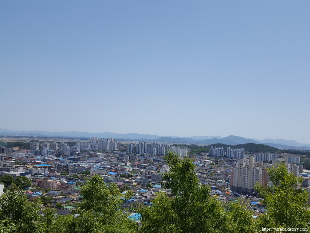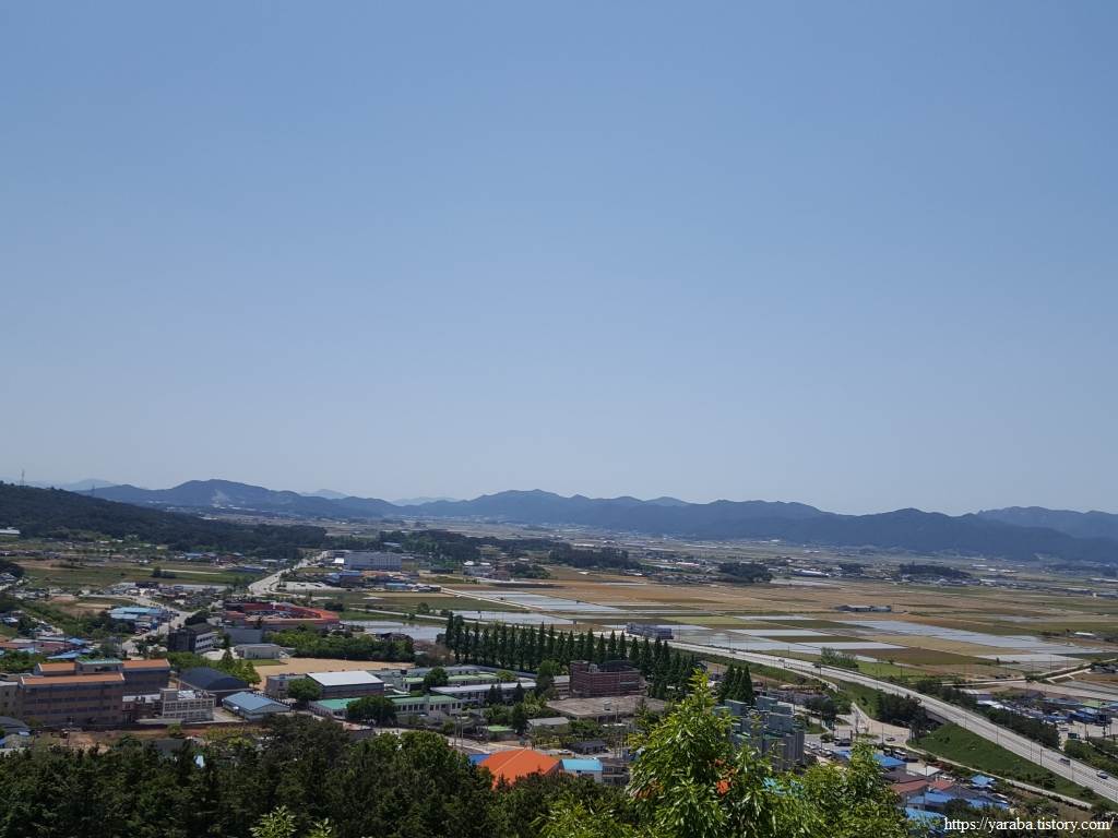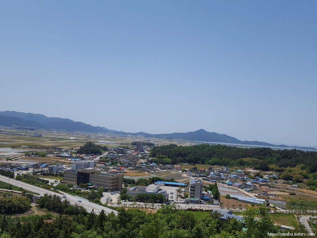 서쪽은 우리가 49코스로 걸어왔던 상서면, 하서면 쪽 풍경이다. 바로 앞으로는 요양병원과 경찰서가 자리하고 있다.