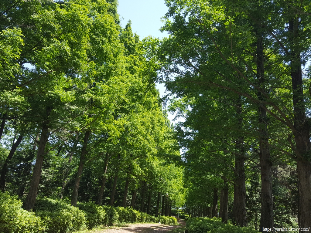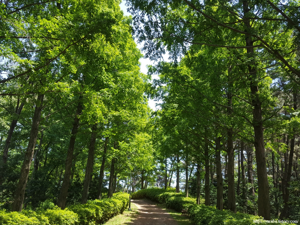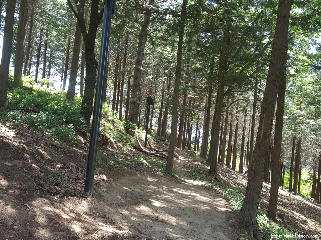 편백나무 사이를 가늘게 들어오는 햇살을 즐기며 한참을 누워서 휴식을 취했다. 숲 속에 잔잔하게 퍼지는 음악과 숲 향기를 맡으며 쉴 수 있는 최고의 휴식 공간이었다. 휴일에도 사람이 거의 없어서 부담 없이 쉴 수 있었다. 심지어 해먹도 걸려 있었다.