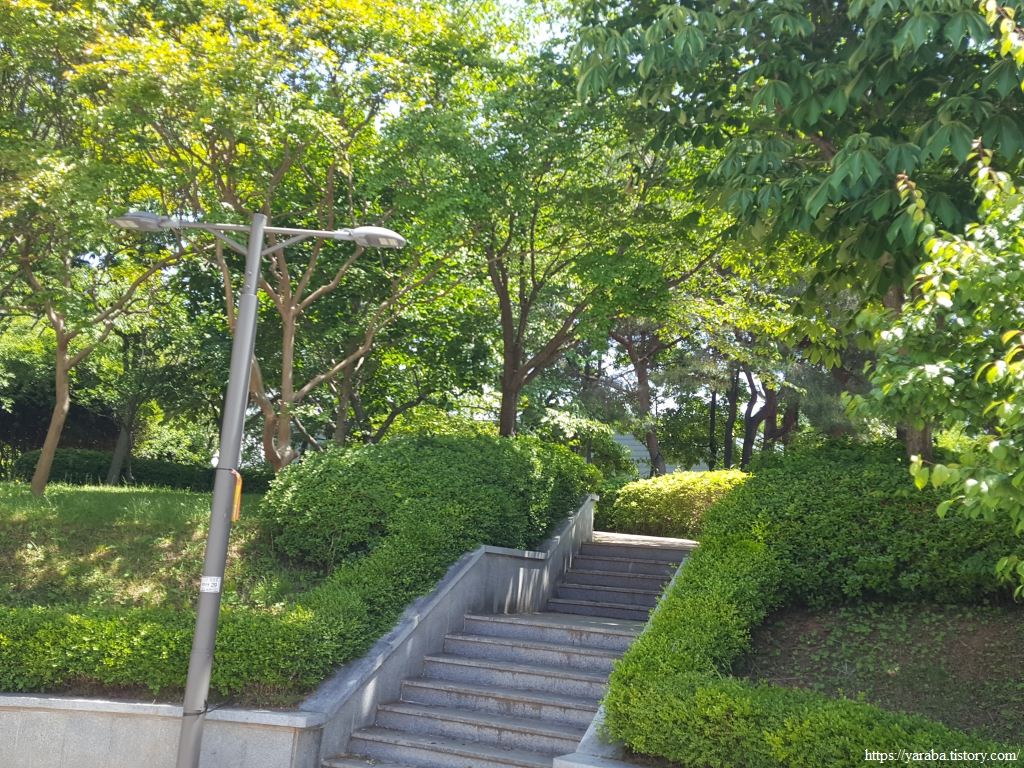 쭉쭉 뻗은 나무 사이로 이어진 서림공원의 산책로는 훌륭했다. 산책로가 좋아서 그런지 드문드문 지나가는 시만들도 반갑게 인사를 건넨다.