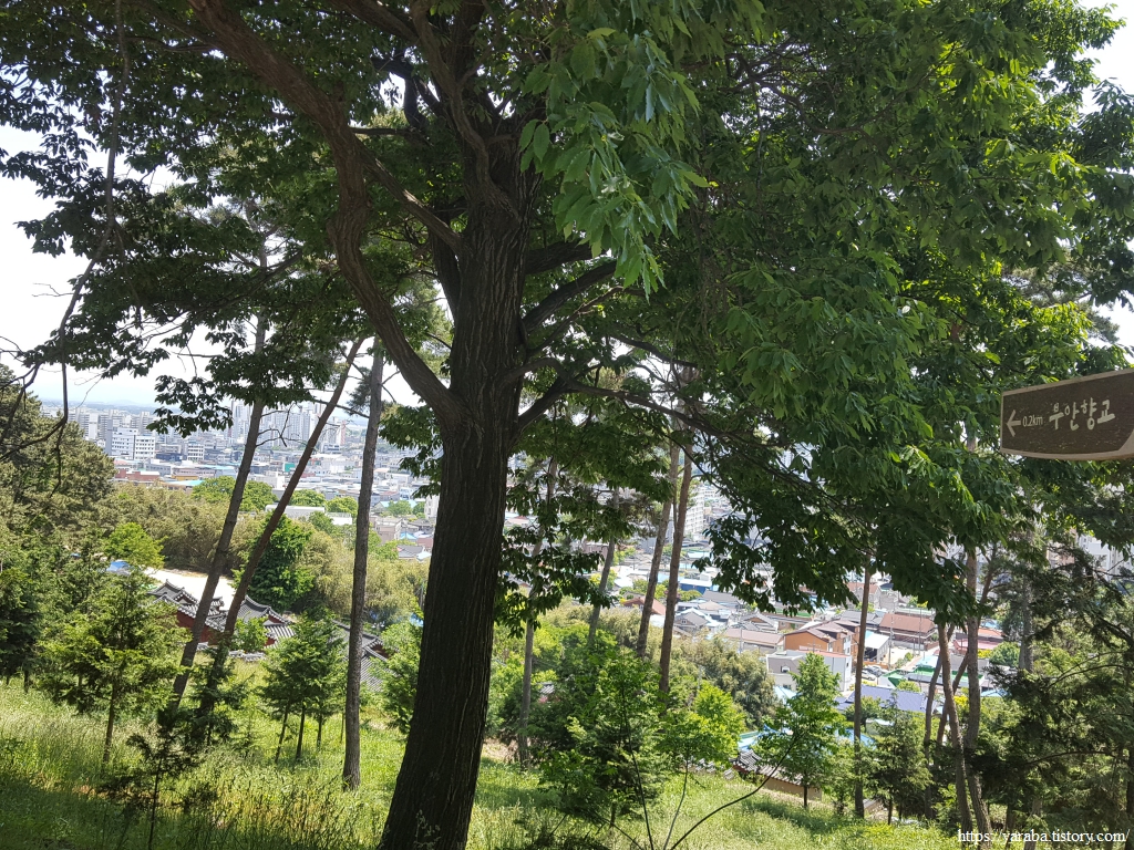 저 멀리 산 아래 자락으로는 조선 태종 당시 창건했다는 부안향교도 시야에 들어온다. 서림공원의 오르막길을 오르기 시작한다. 국가산림문화자산으로 지정된 공원이기도 하다.