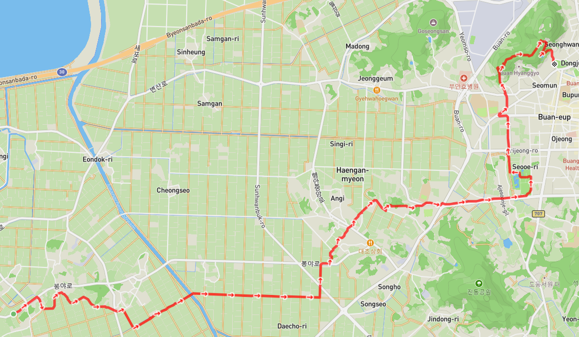 산을 내려온 길은 부안군청 앞에서 코스를 마무리한다.