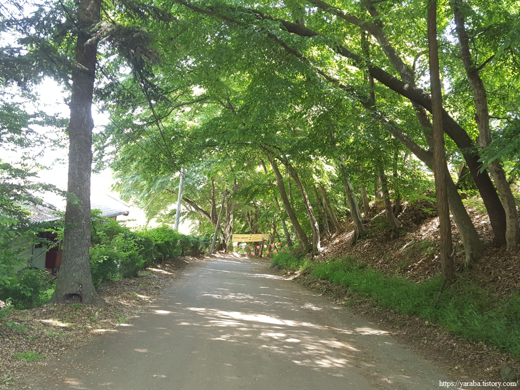 나무가 훌륭한 서림공원의 산책로는 사찰이 있는 쪽으로 계속 이어지지만 서해랑길은 갈림길에서 하산길로 접어든다. 벌써 그늘이 좋고 햇빛으로 나서기가 겁나는 계절이 왔다.