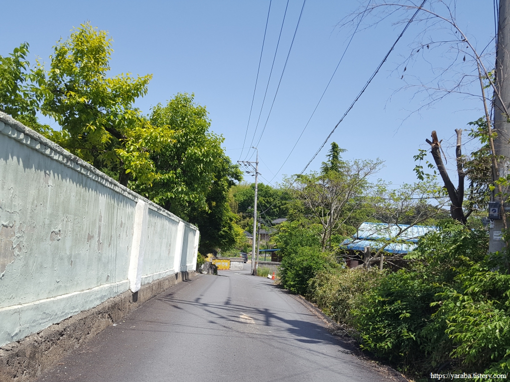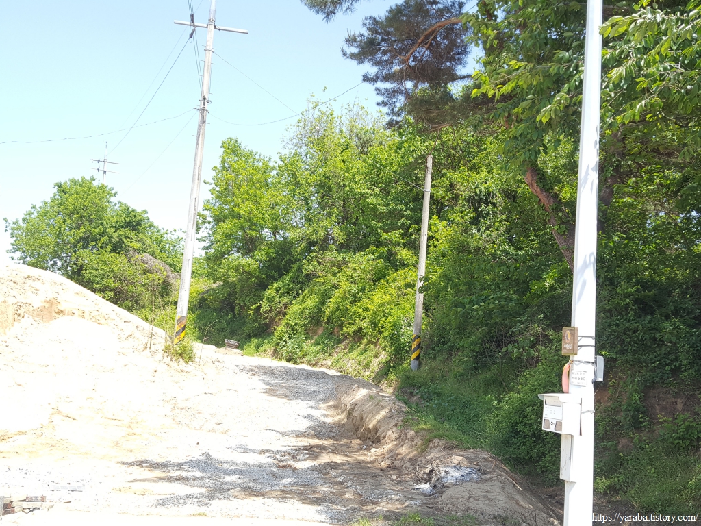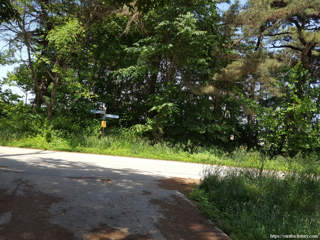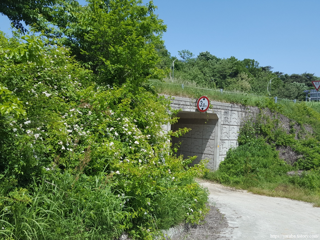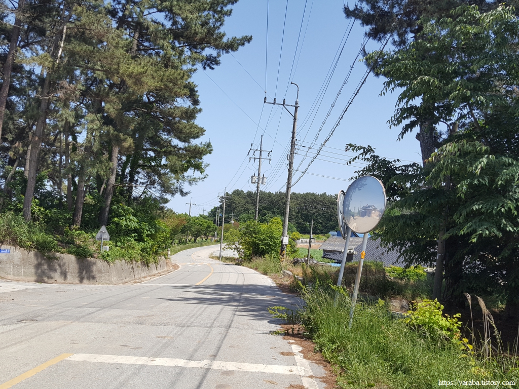 마을 뒤 고개를 넘어가는 길은 사람이 많이 다니지 않는 공간인지 우거진 풀숲을 통과해야 하지만 이런 구간이 길게 이어지지는 않는다. 콘크리트나 아스팔트로 생명의 숨구멍을 막아버린 길이 아니라면 사람이 다니지 않으면 자연스레 길이 없어지는 것이 자연스러운 일이 아닌가 싶기도 하다. 멀리 고개 아래로 보이는 국도를 향해서 내려간다.