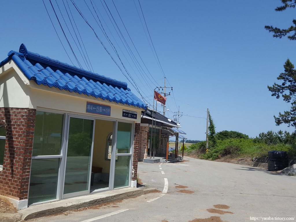 상리마을을 지나온 길은 신흥마을을 거쳐간다. 버스 정류장을 품격 있게 지어 놓았다.