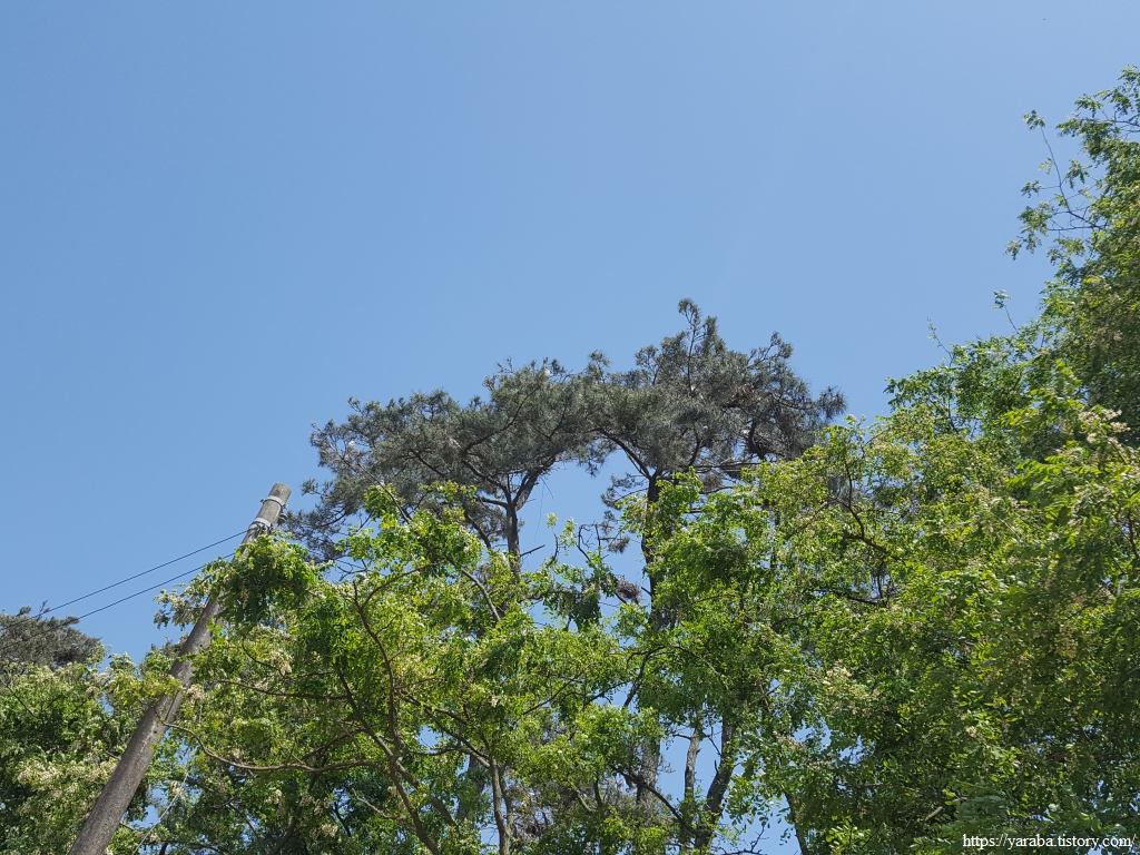 사람이 나무 아래로 지나가면 침입자로 여기는지 더 요란하게 울어대는 것 같다.